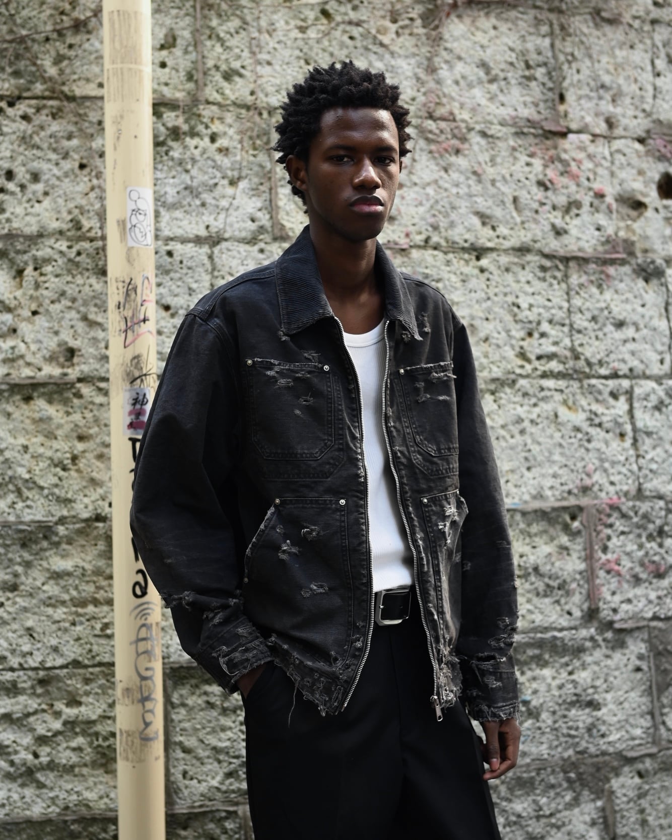 MH045 Distressed Jacket / BLACK