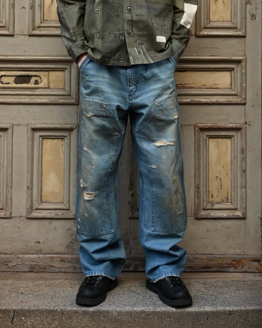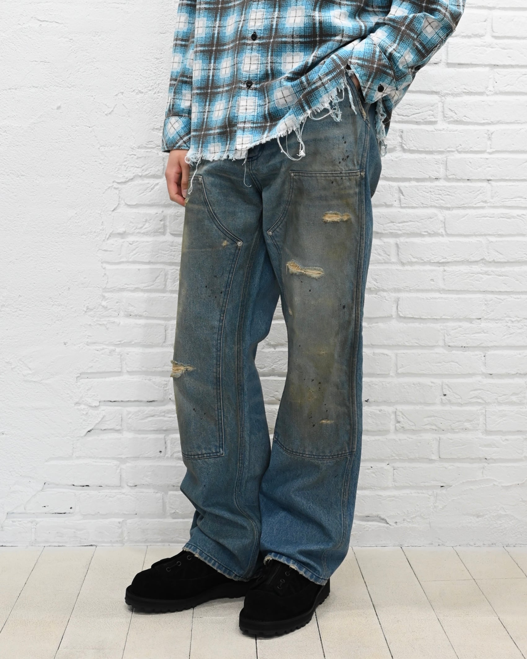 MH048 Damaged Work Pants / BLUE Denim