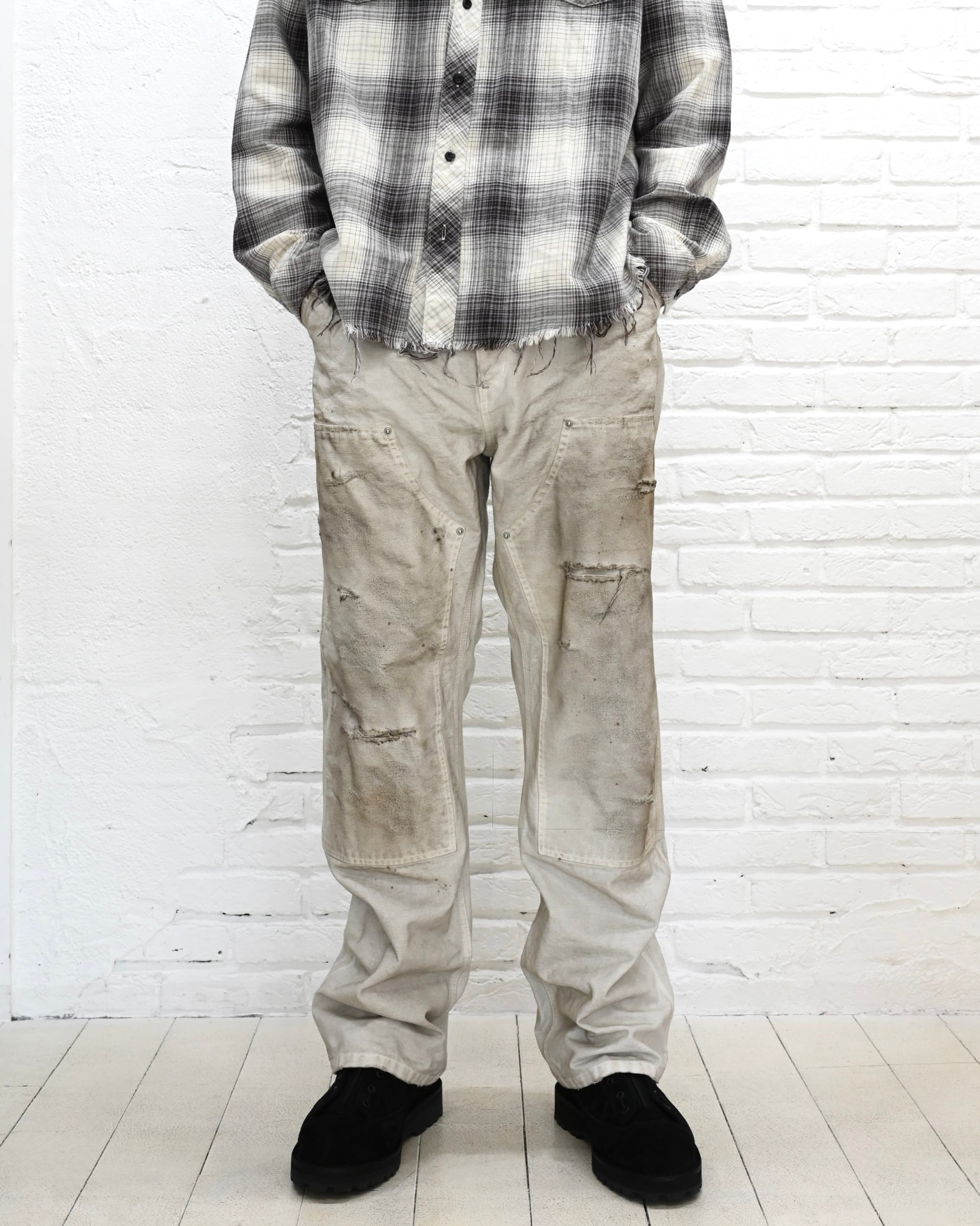 MH048 Damaged Work Pants / WHITE