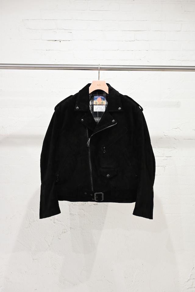 blackmeans × Rafu コラボレーションライダースジャケット。 size S / 肩幅:56cm 身幅:65cm 着丈:63cm 袖丈:59cm size M / 肩幅:58cm 身幅:68cm 着丈:65.5cm 袖丈:60.5cm size L / 肩幅:60cm 身幅:71cm 着丈:68cm 袖丈:62cm