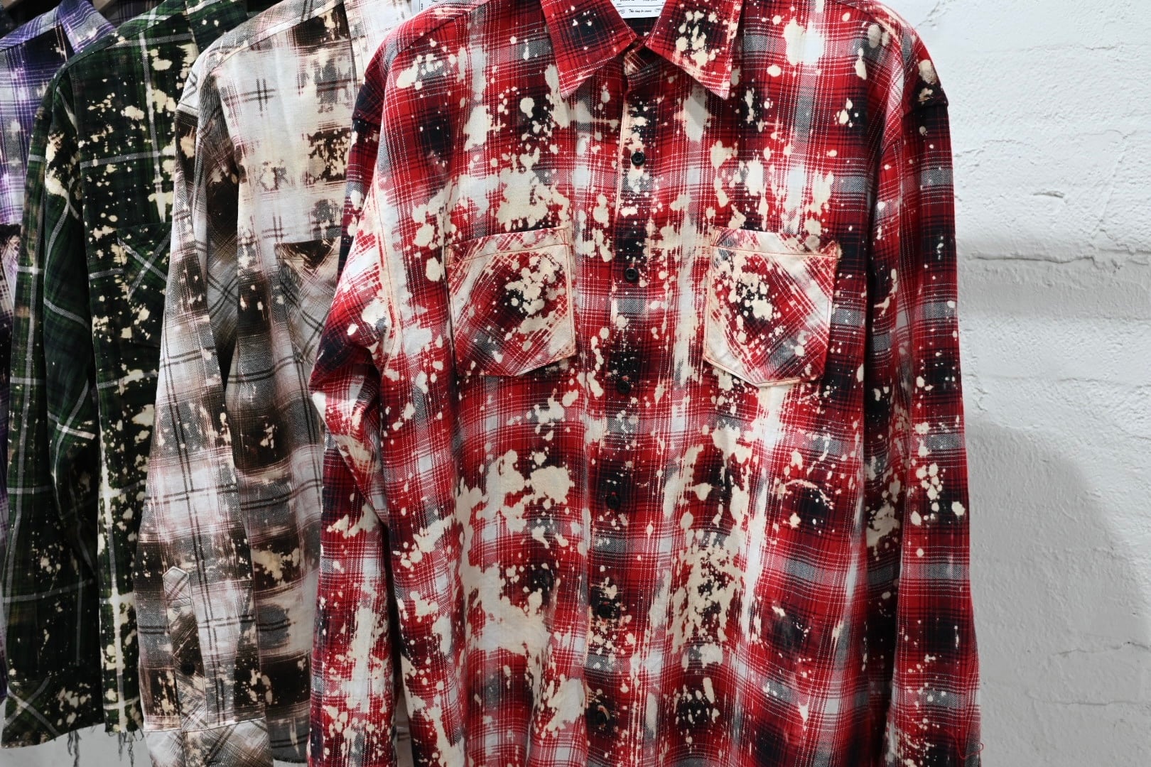 ・デザイナーが一点ずつ手作業でブリーチ加工を施しています。そのため、すべての仕上がりが少しずつ異なります。お届けする商品が写真と異なる場合がございますが、手作業ならではの風合いをお楽しみください。