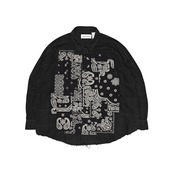 6柄のバンダナをアソートに組み合わせたパネルパッチワークの一着は、すべてが一点もの。ギザステッチを施すことで立体感を持たせ、表情豊かな仕上がりとなっています。