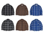 表面ストライプ柄、裏面チェック柄のリバーシブルネルシャツ。
