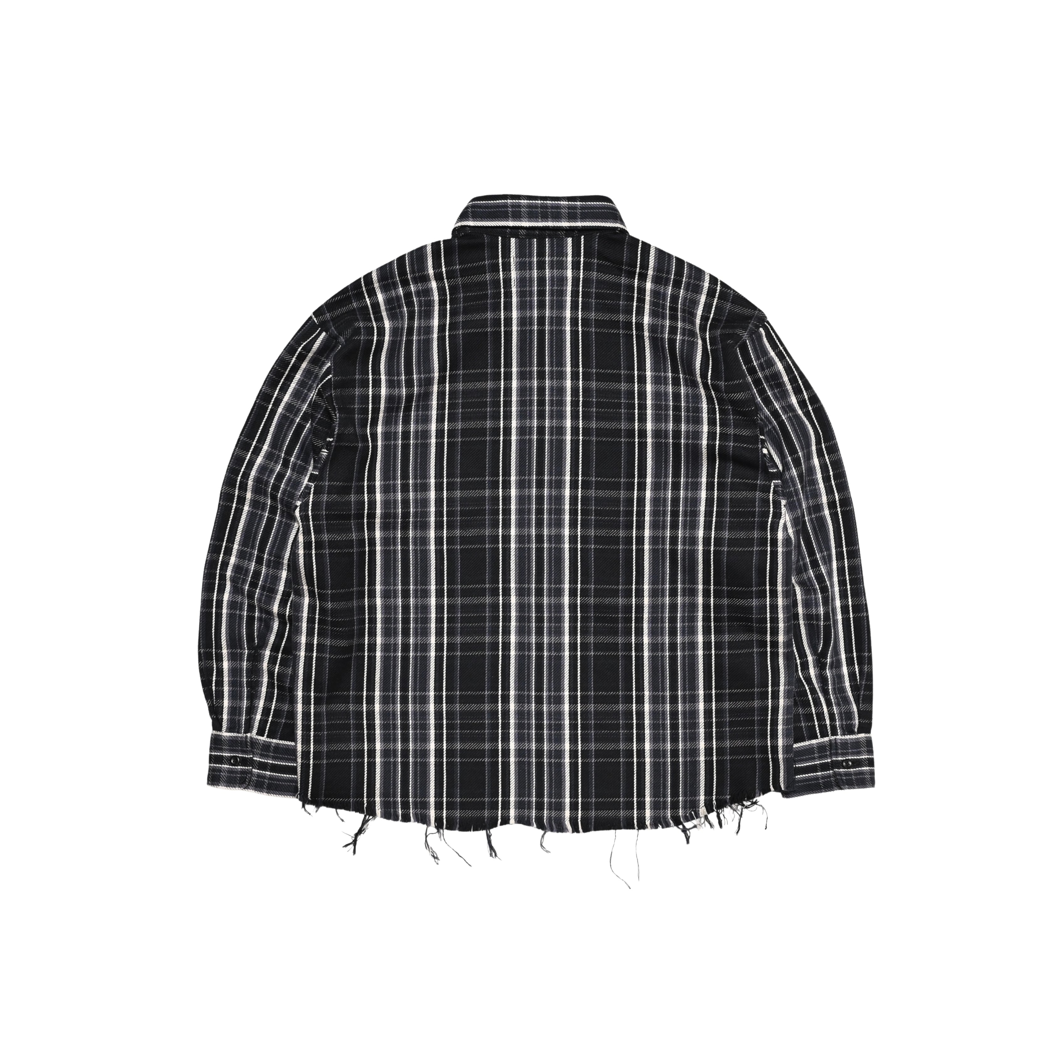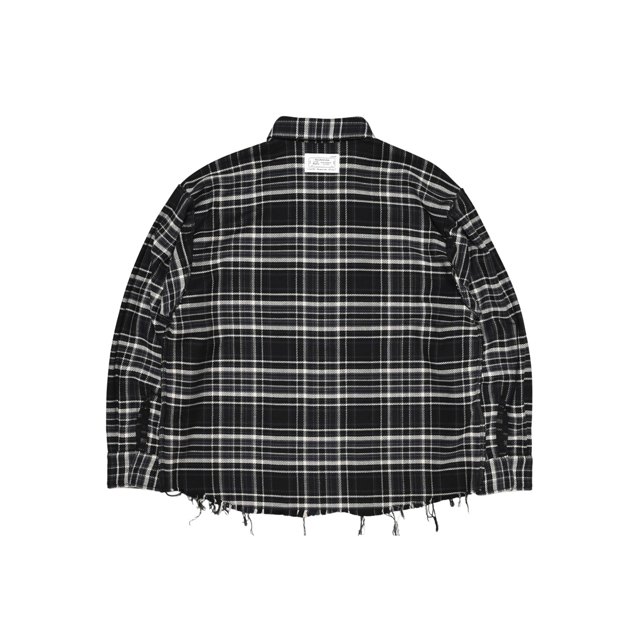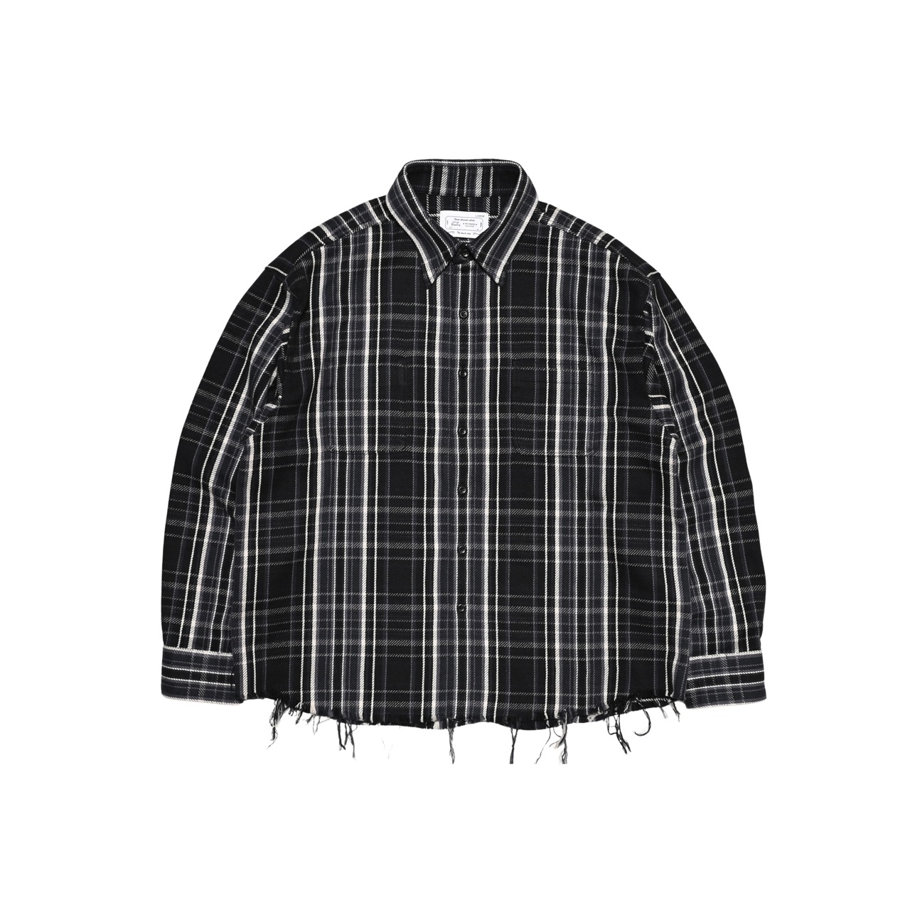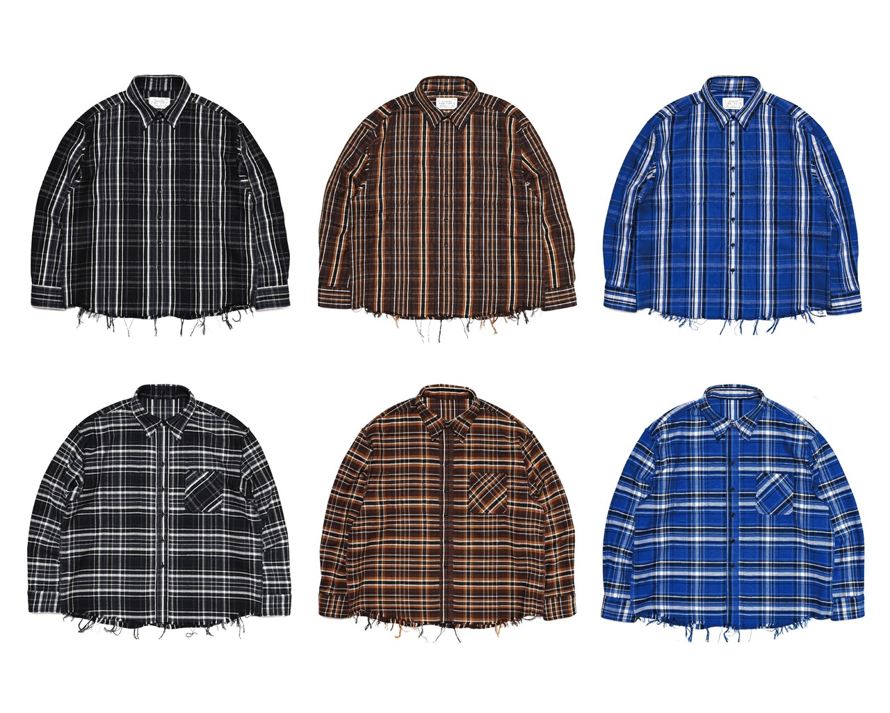 表面ストライプ柄、裏面チェック柄のリバーシブルネルシャツ。