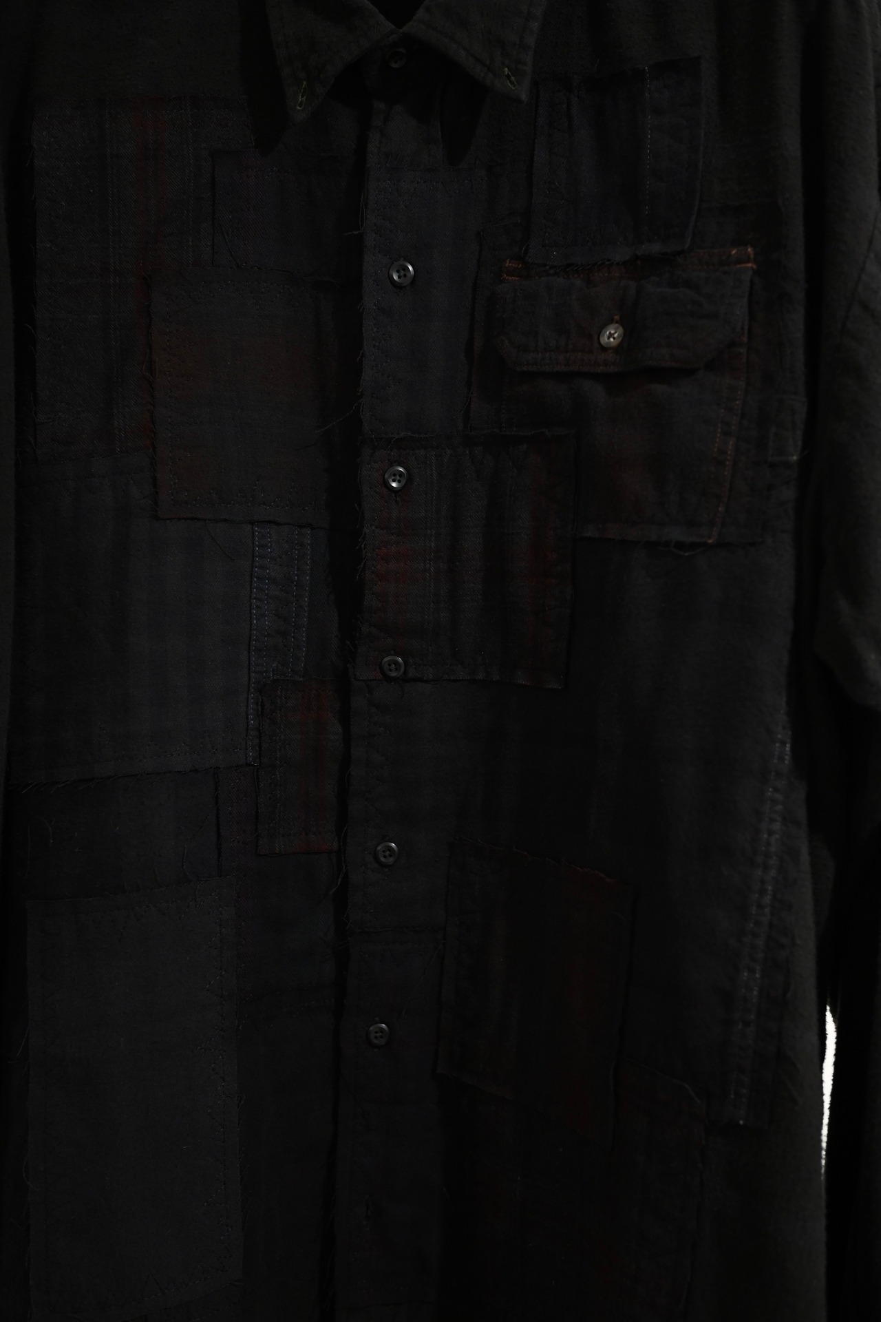 16種類のネル柄を組み合わせたパネルパッチワークの一着は、すべてが一点もの。ギザステッチ