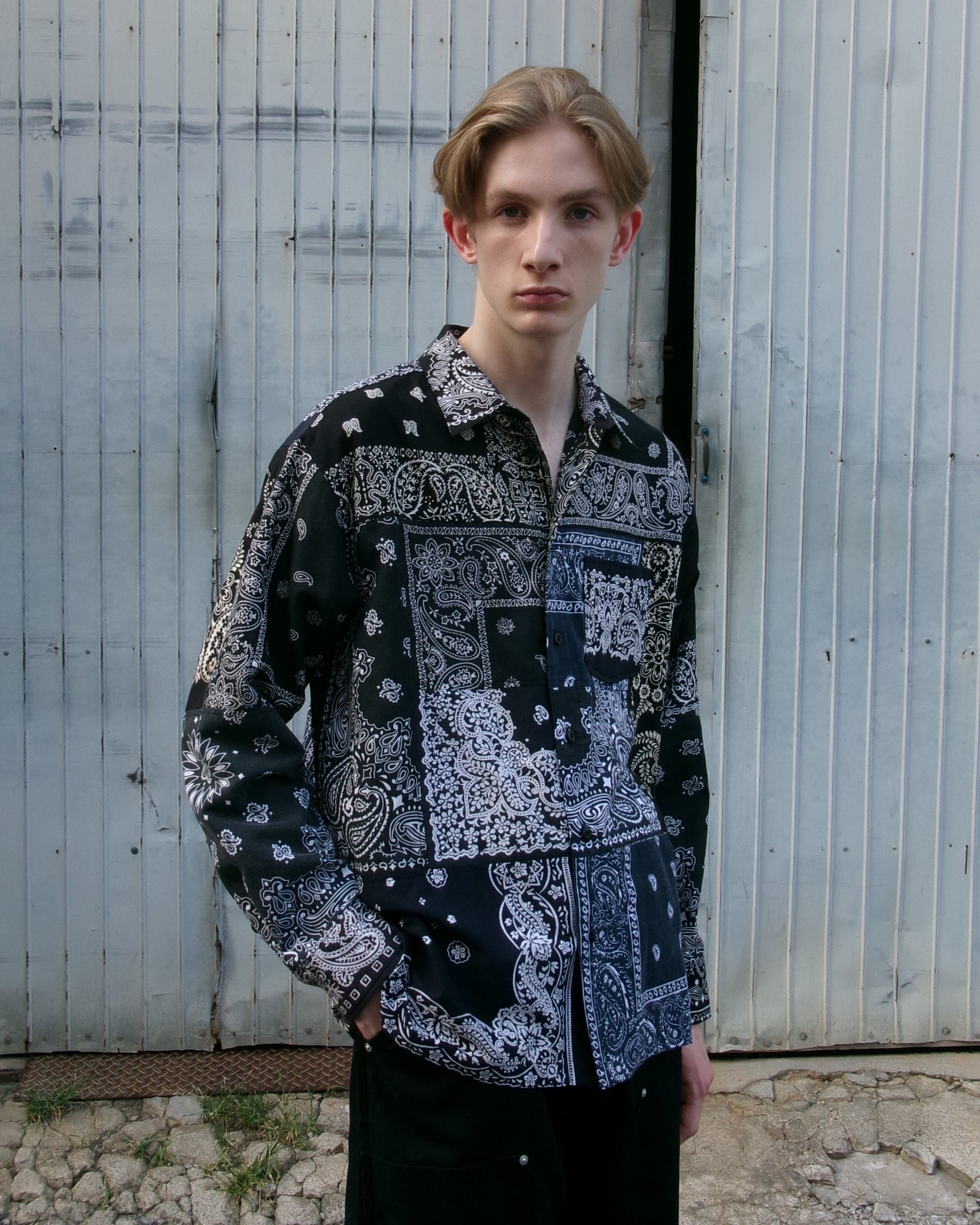 Made in USAのVintage Bandanaを使用したパッチワークシャツ。