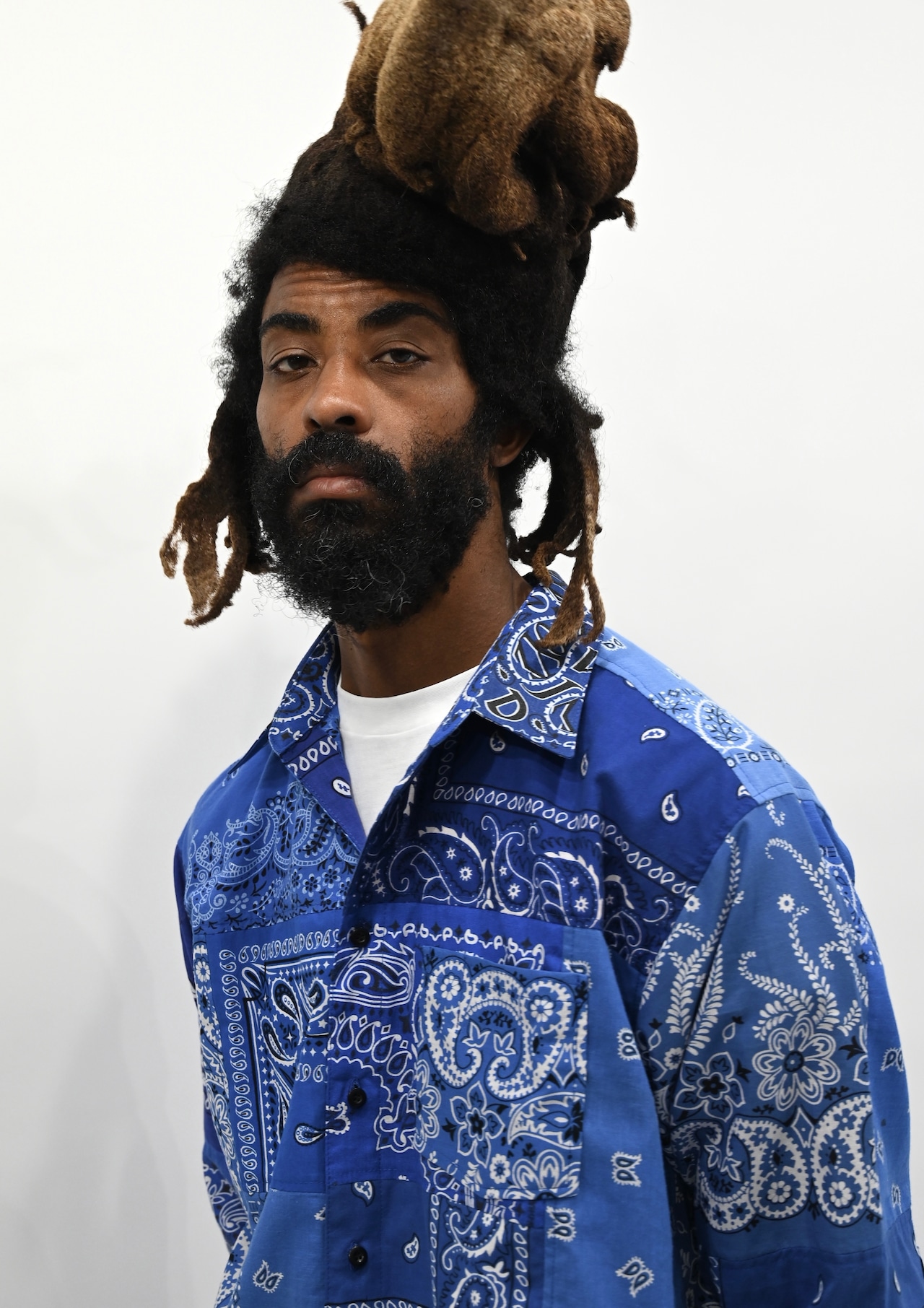 Made in USAのVintage Bandanaを使用したパッチワークシャツ。