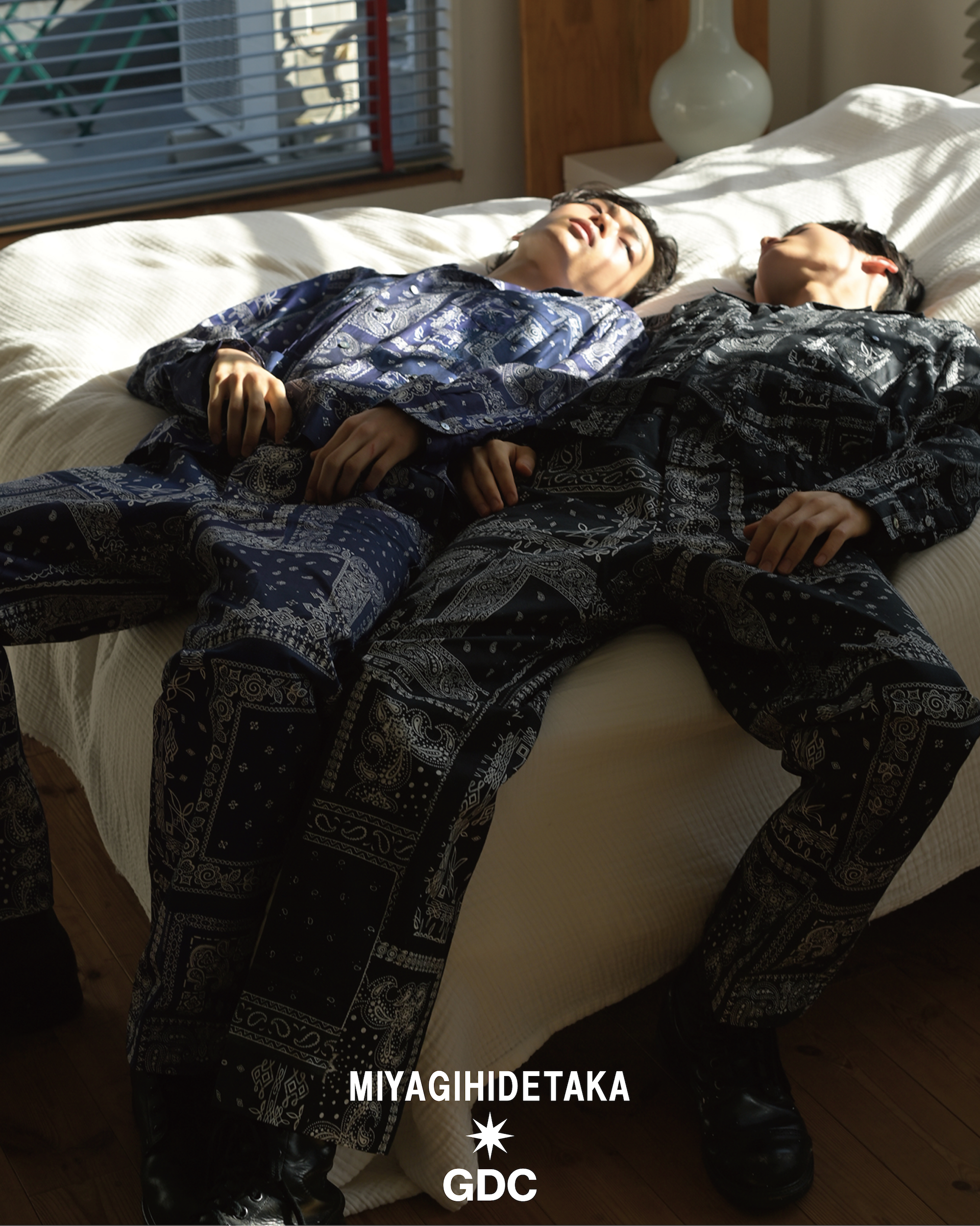 スタイリスト・フォトグラファー・クリエイティブディレクターとして活躍する熊谷隆志が手掛けるストリートブランド〈GDC(ジーディーシー)〉と、デザイナー・宮城秀貴氏が手掛けるブランド〈MIYAGIHIDETAKA(ミヤギヒデタカ)〉によるコラボレーション。