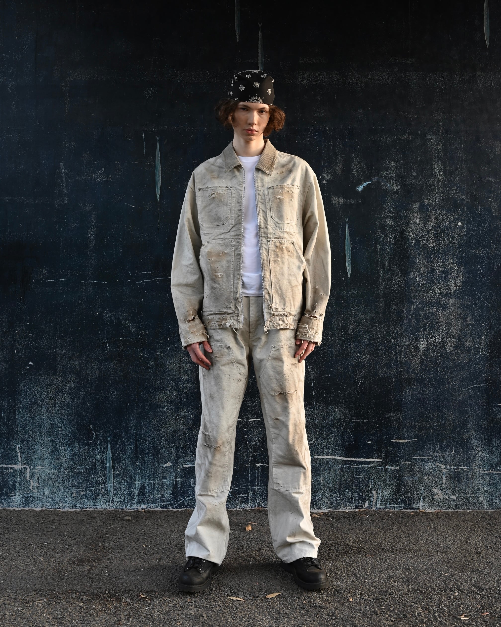 MH048 Damaged Work Pants / WHITE