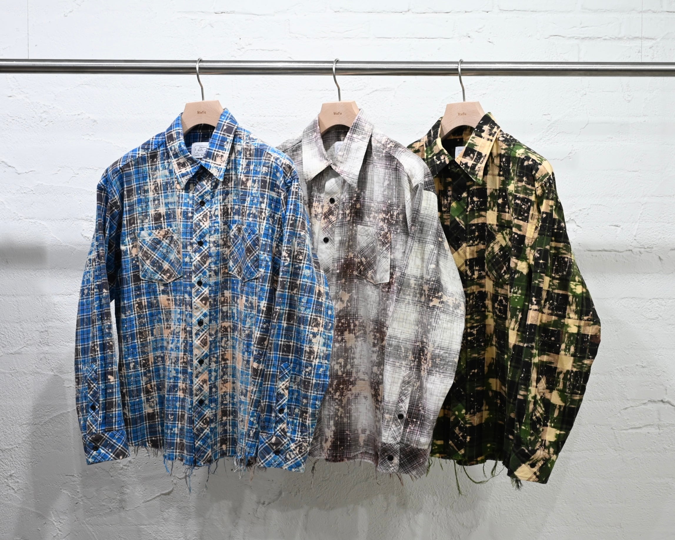 デザイナー自身が一点ずつ加工を施しているブリーチシャツ。
