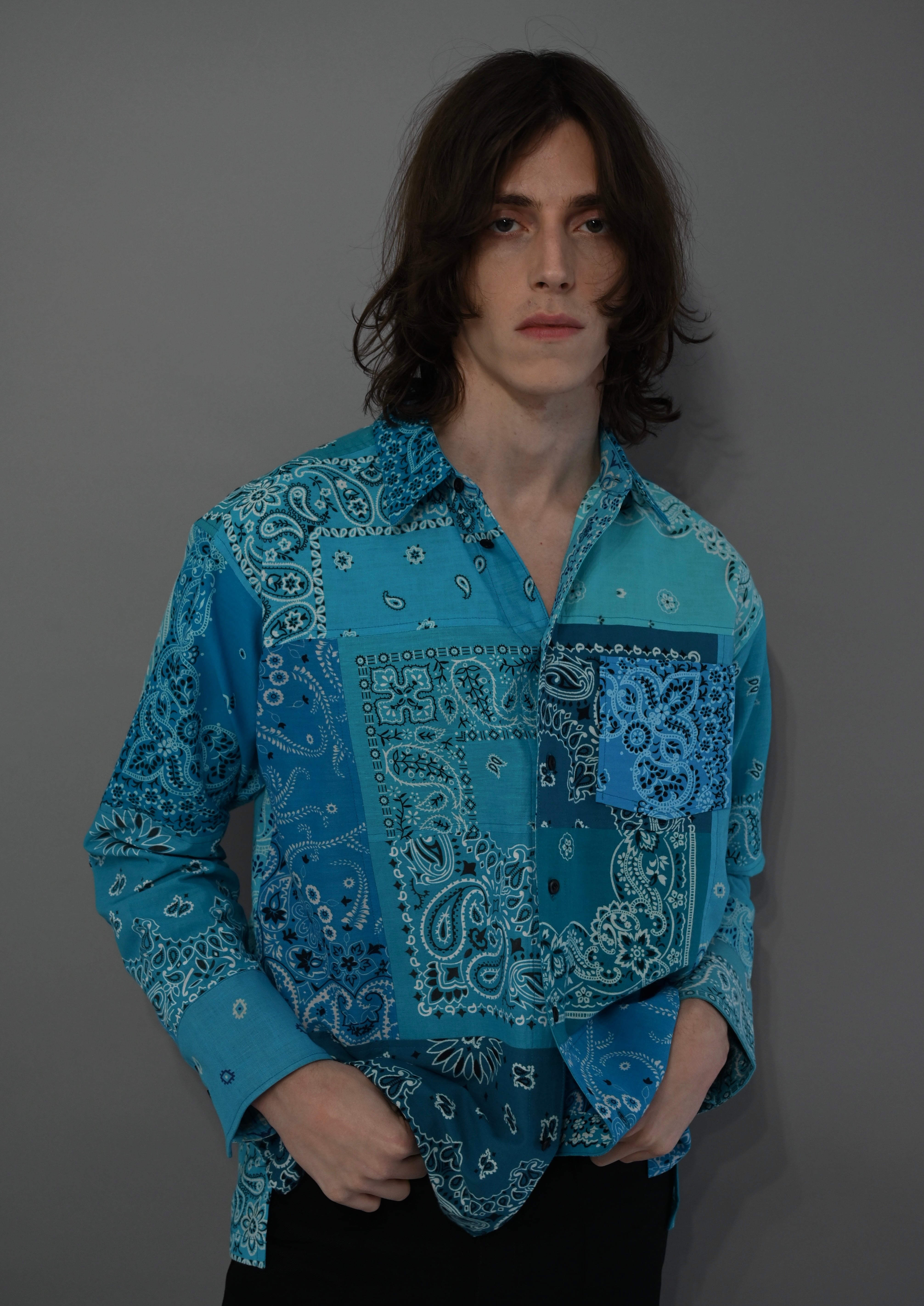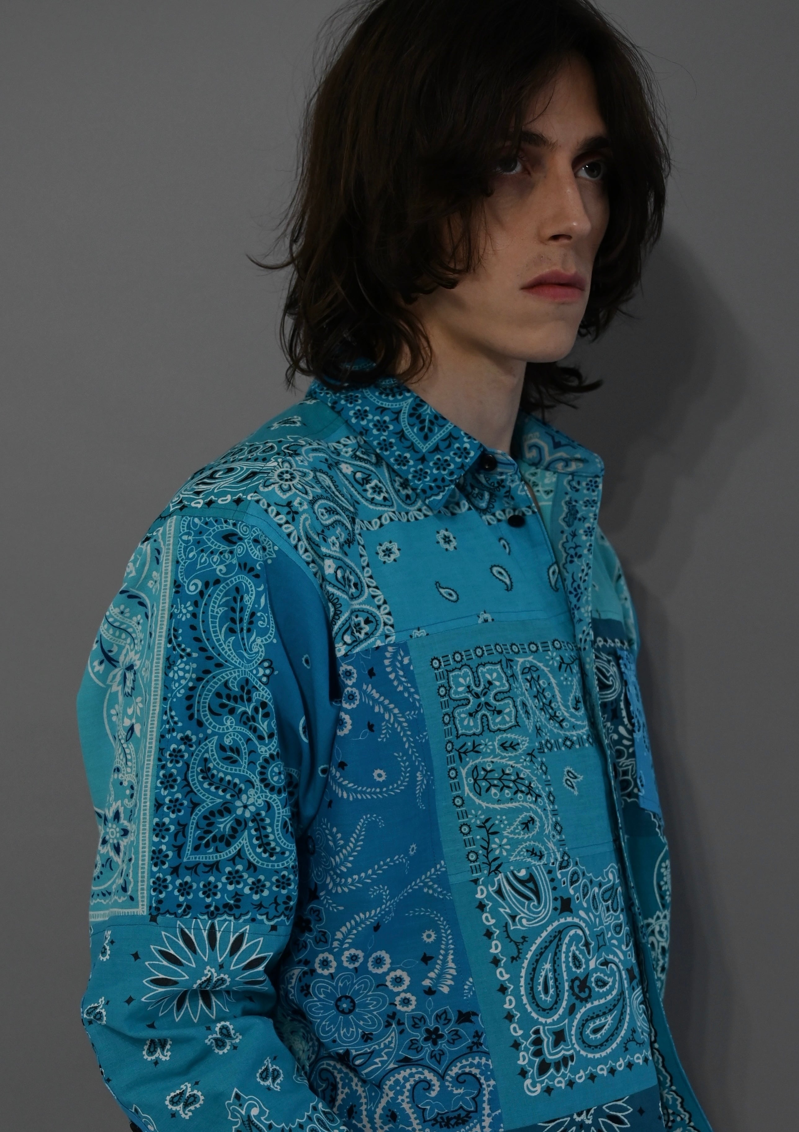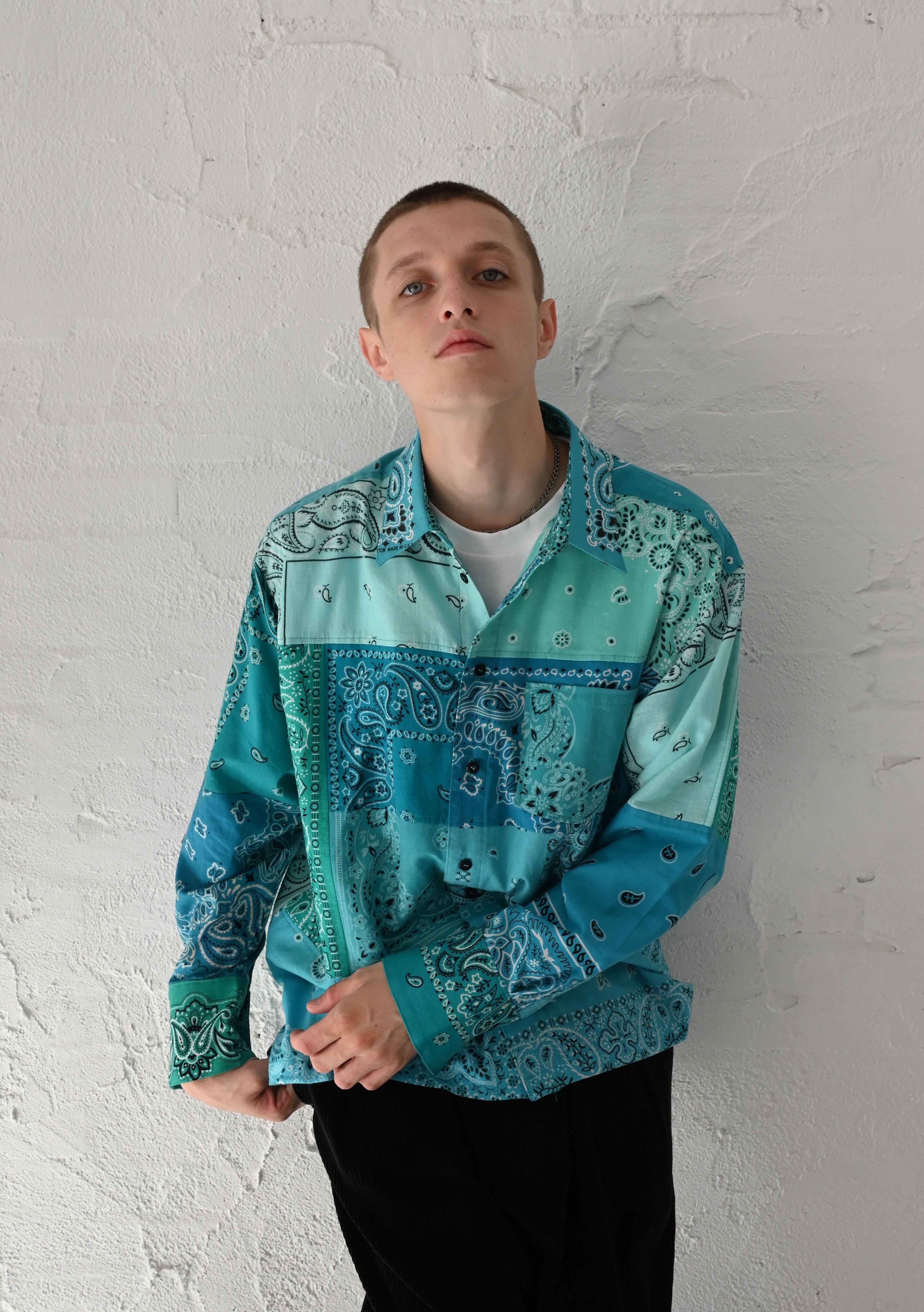 Made in USAのVintage Bandanaを使用したパッチワークシャツ。