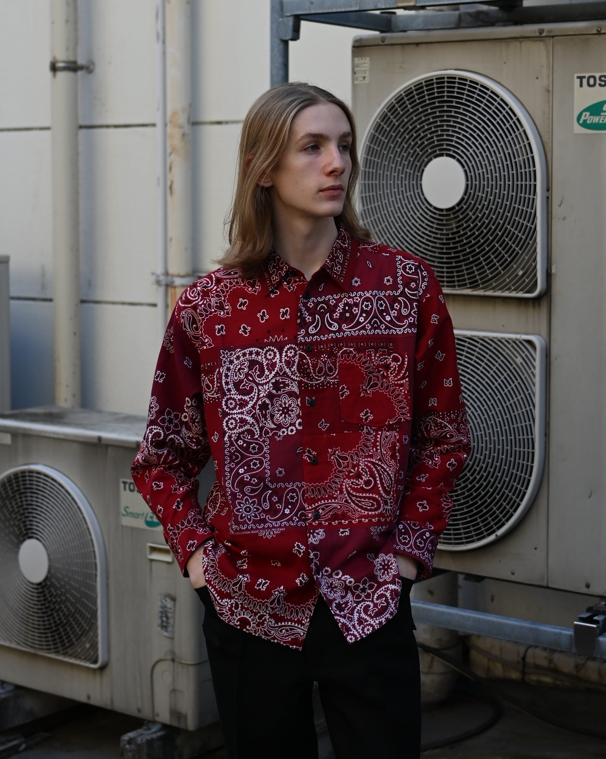 Made in USAのVintage Bandanaを使用したパッチワークシャツ。