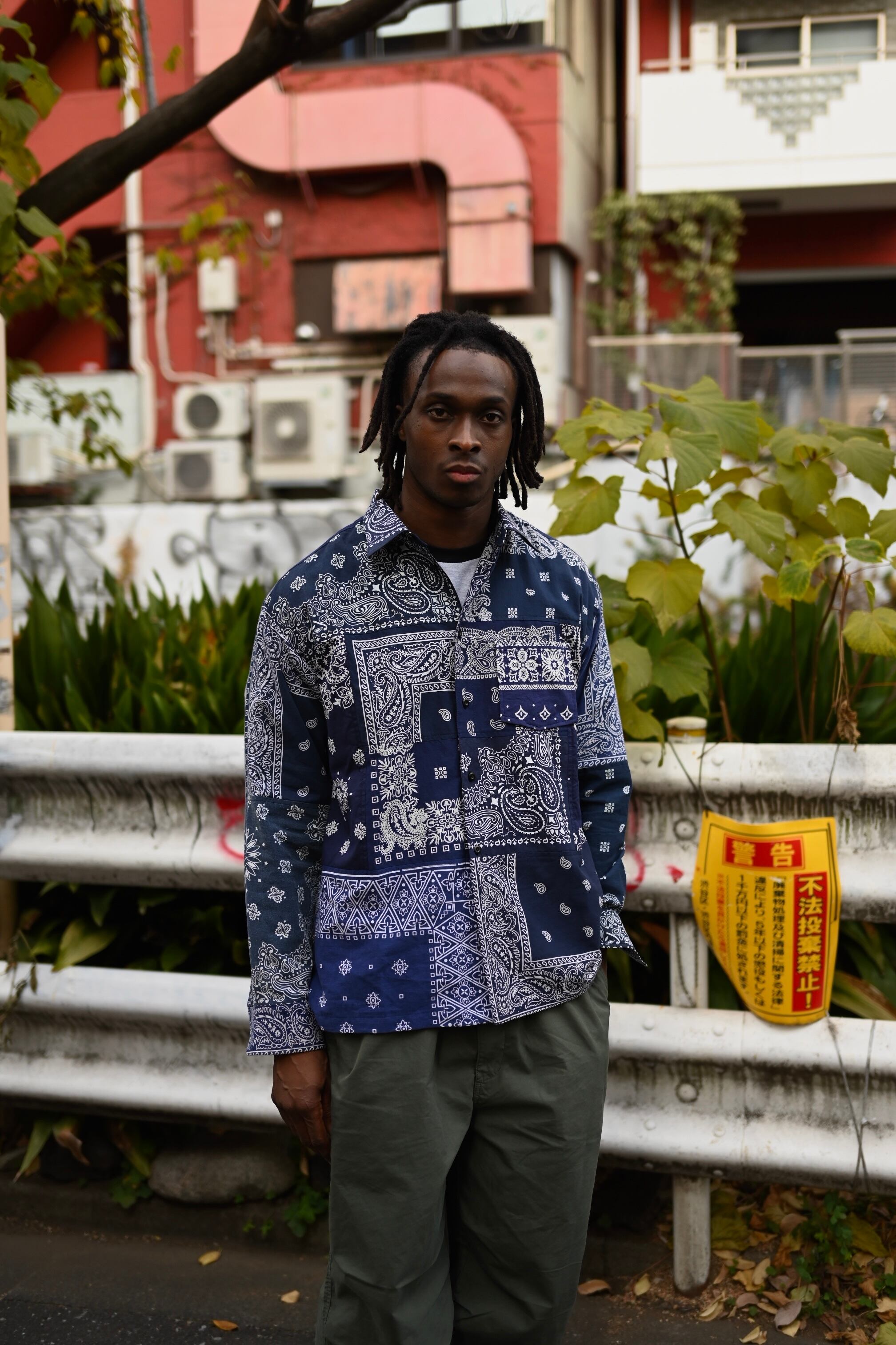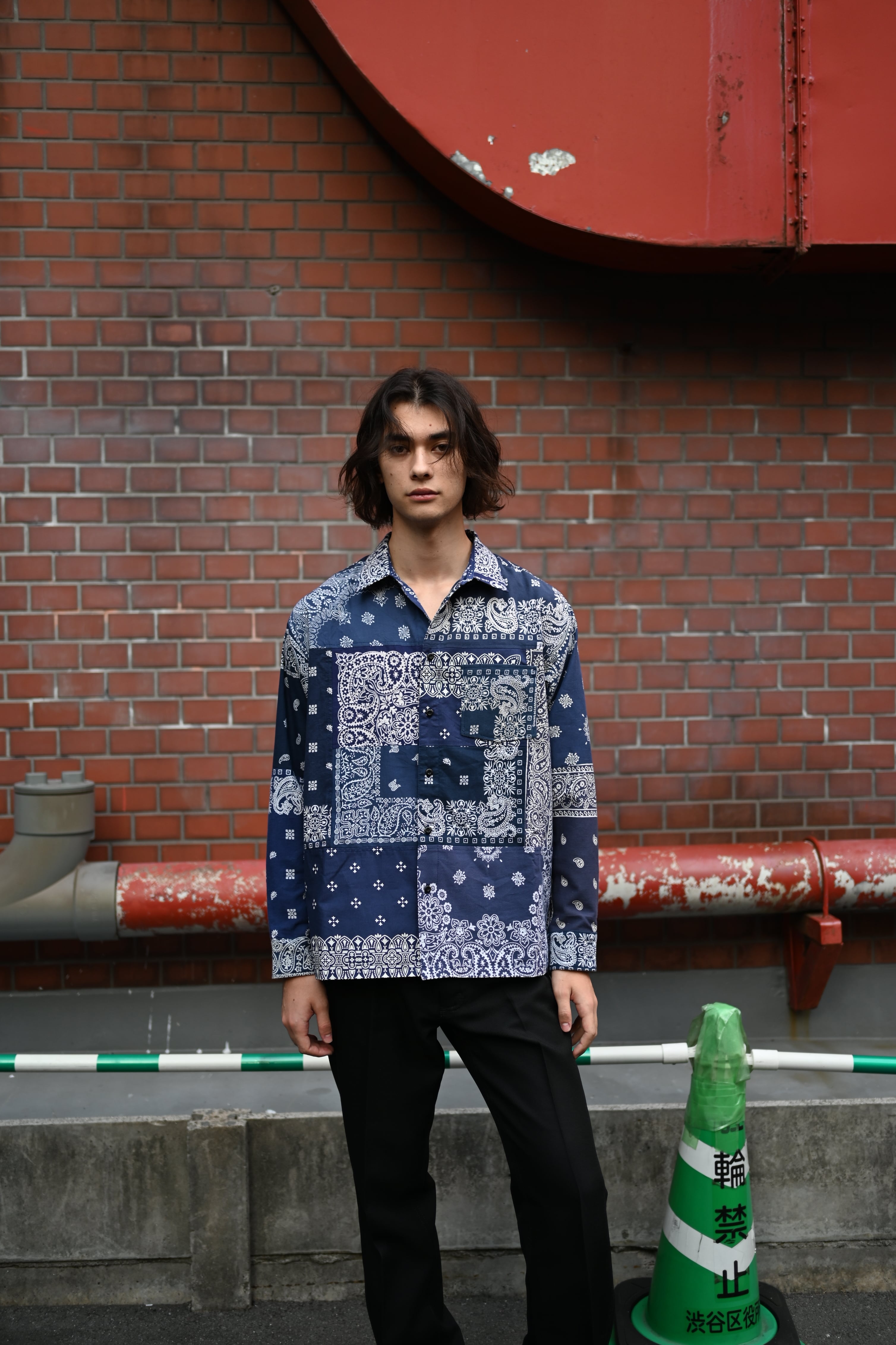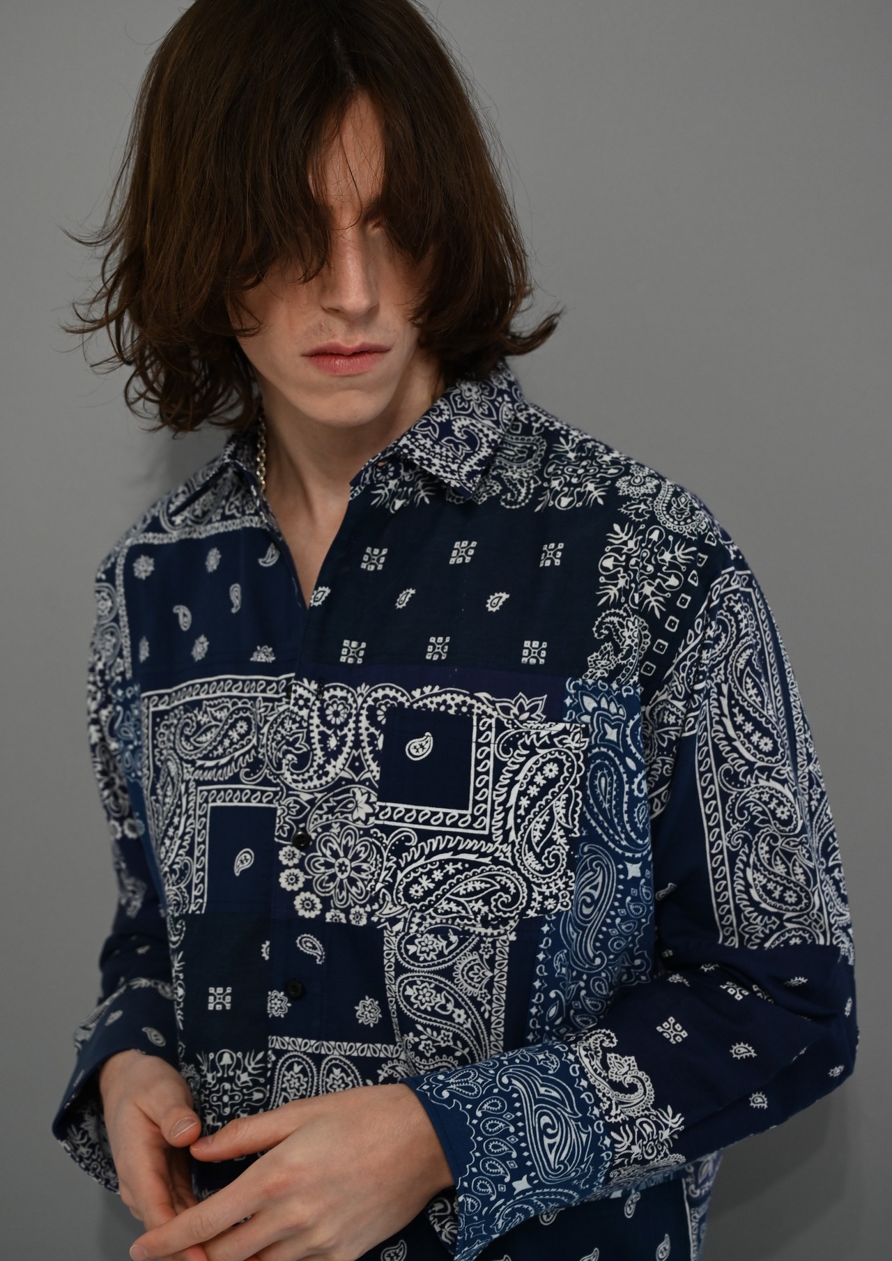 Made in USAのVintage Bandanaを使用したパッチワークシャツ。
