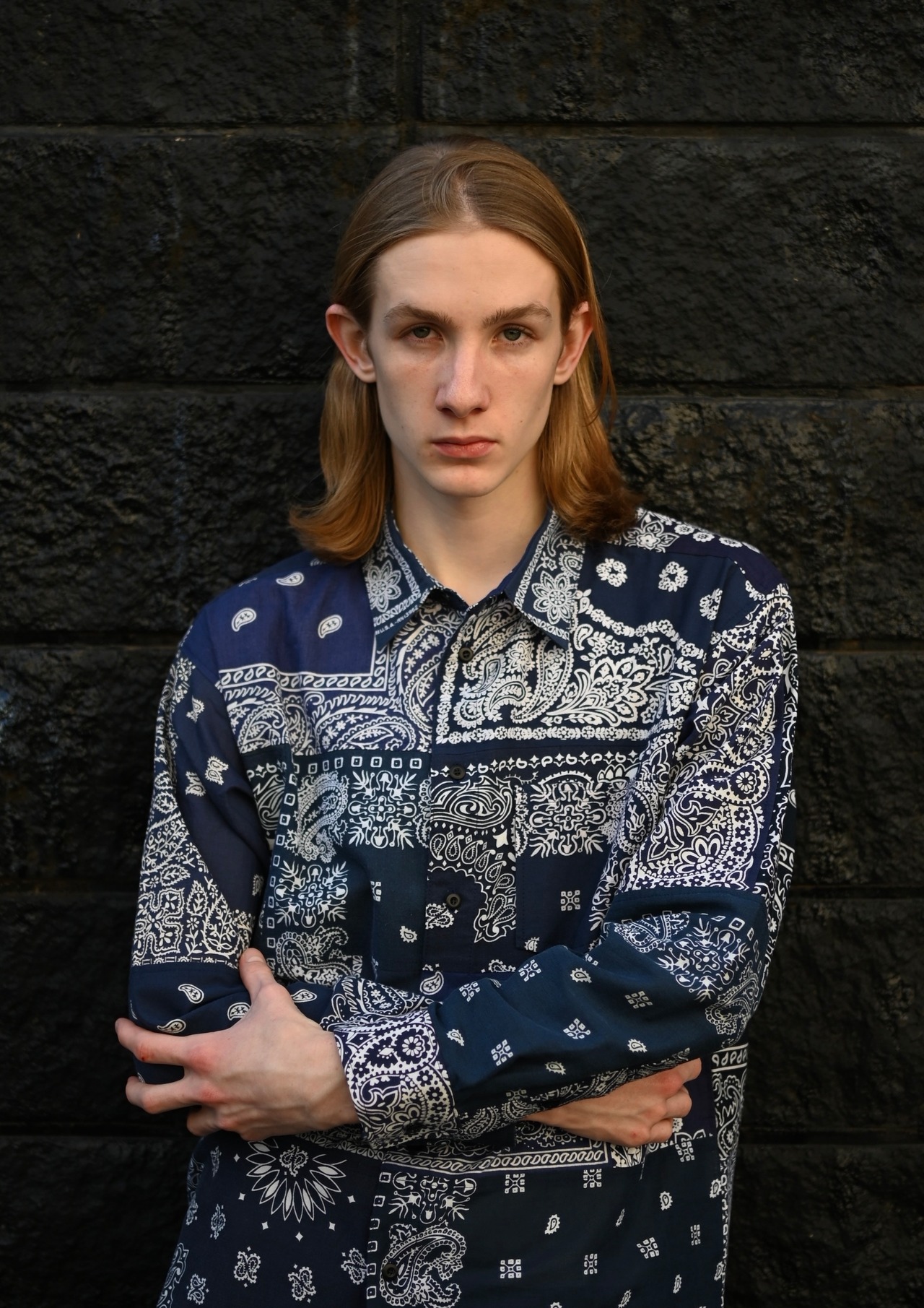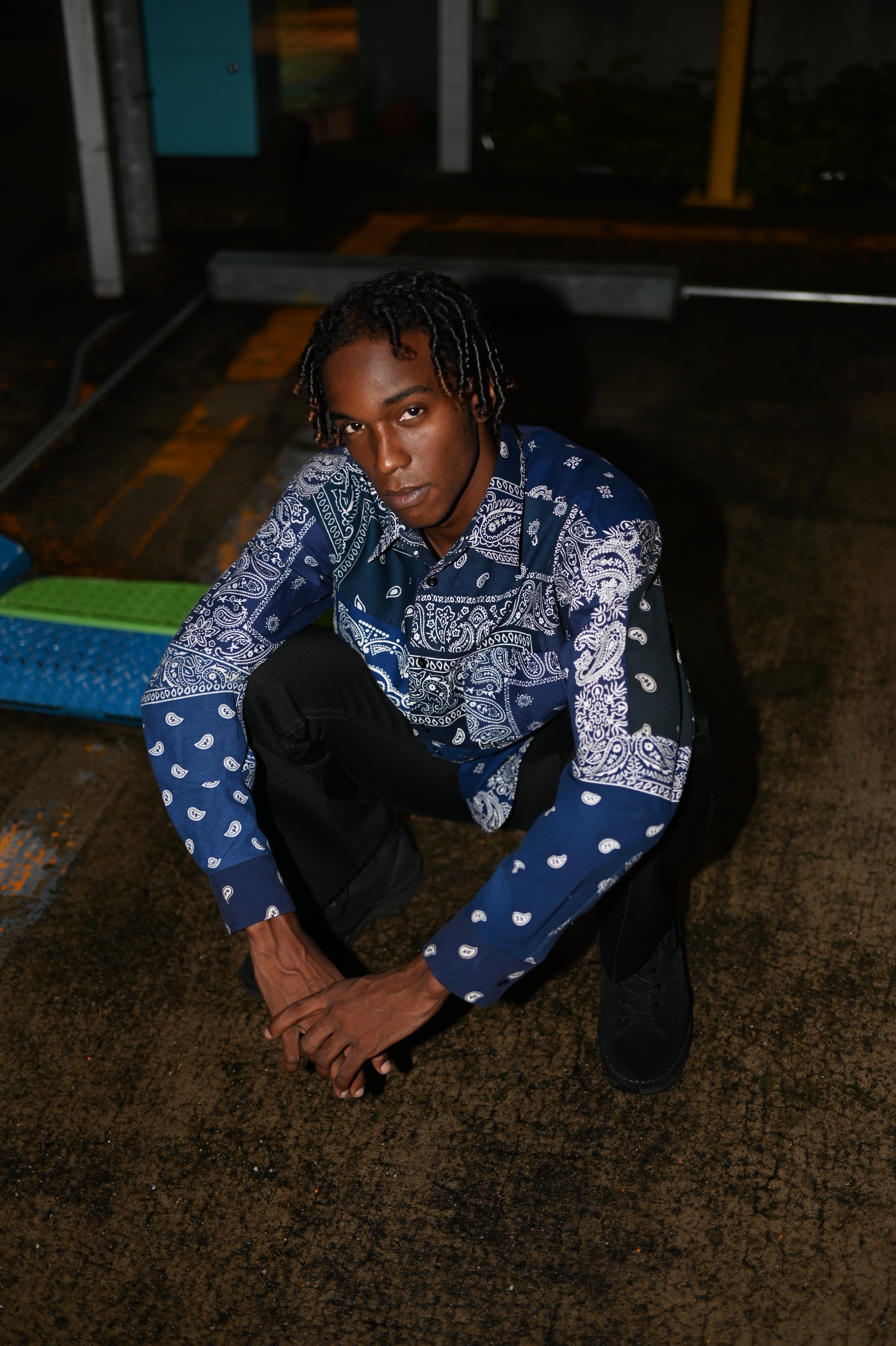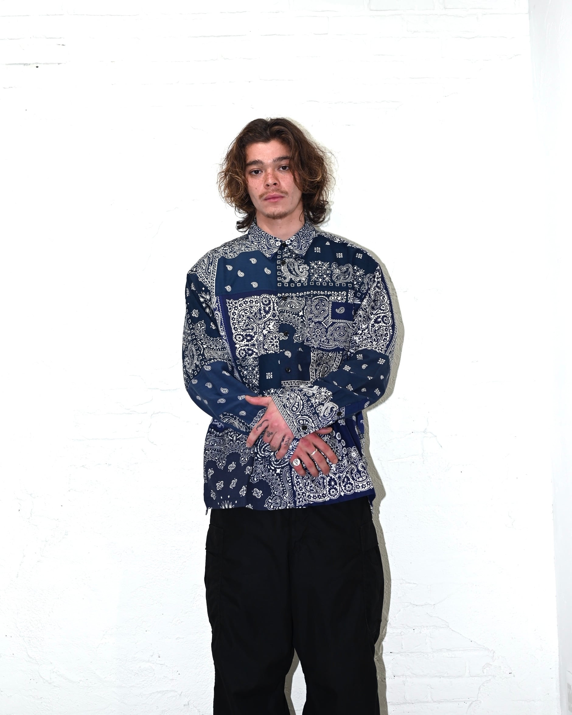 Made in USAのVintage Bandanaを使用したパッチワークシャツ。