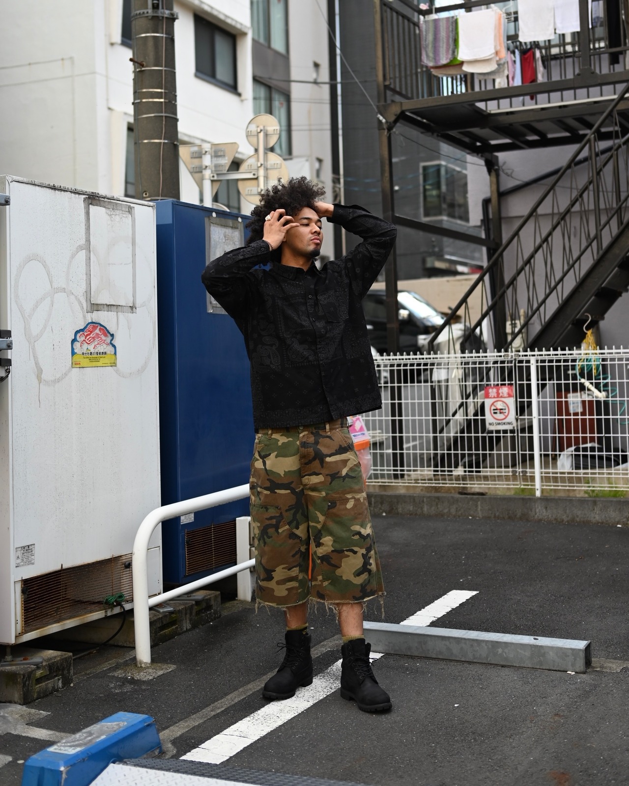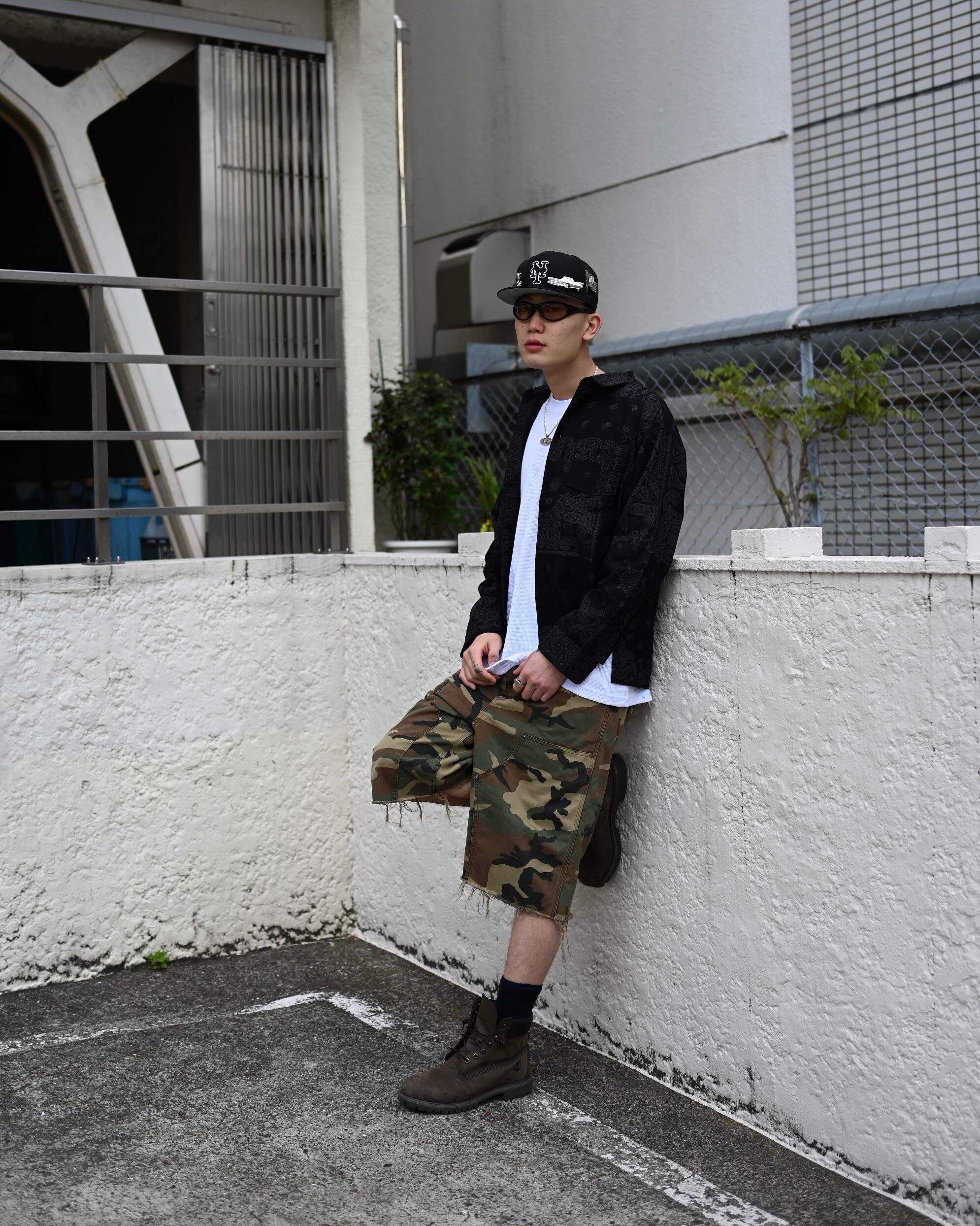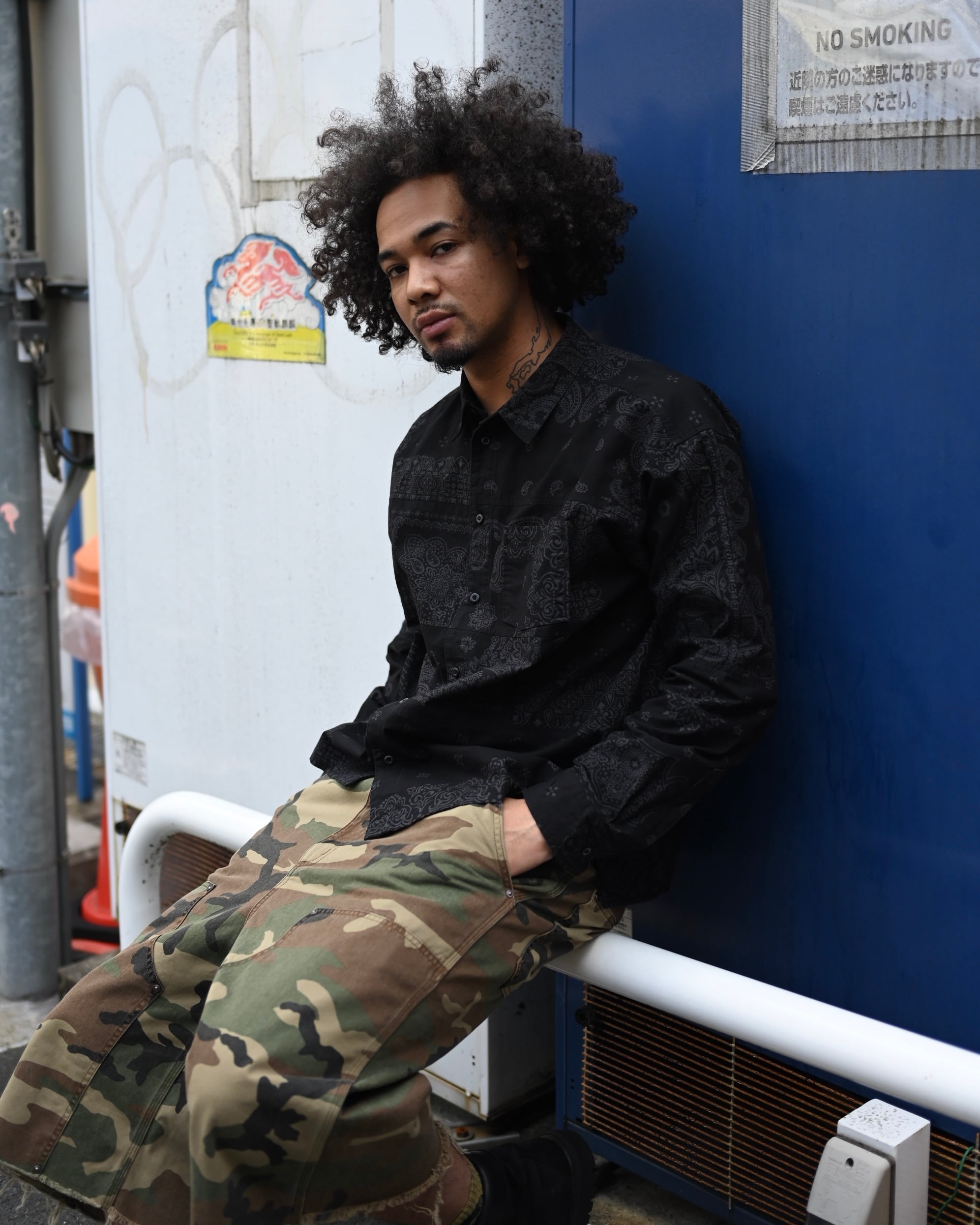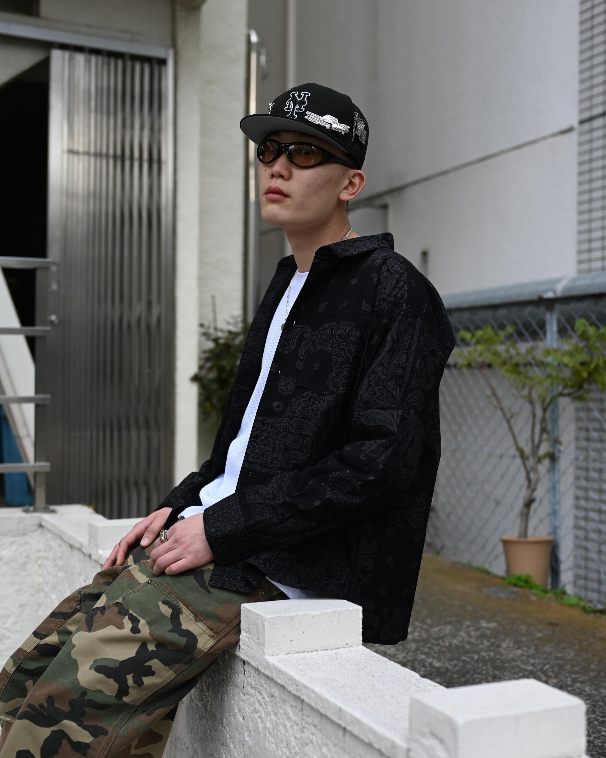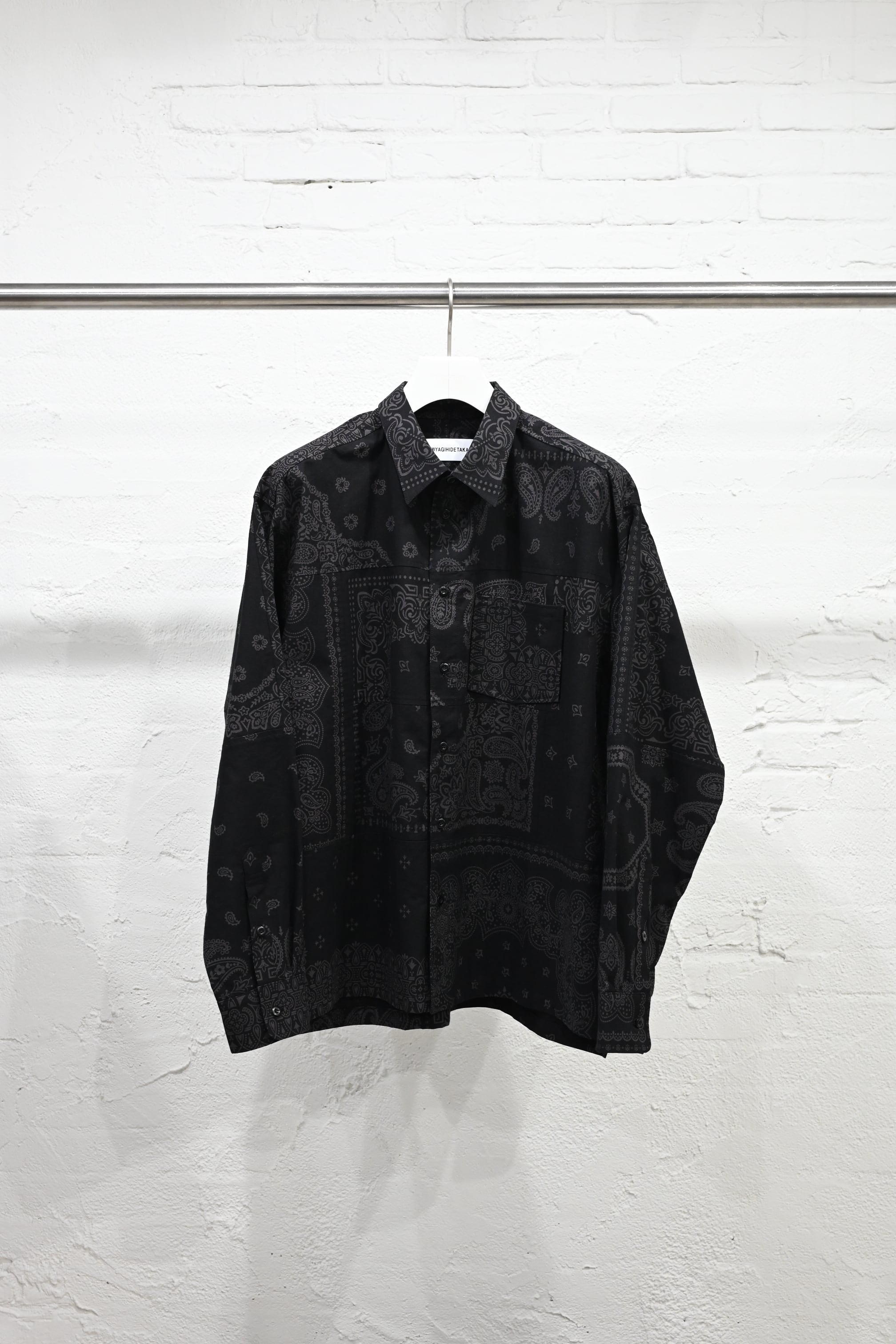 MIYAGIHIDETAKA Original Bandanaを使用したパッチワークシャツ。黒染めをしています。