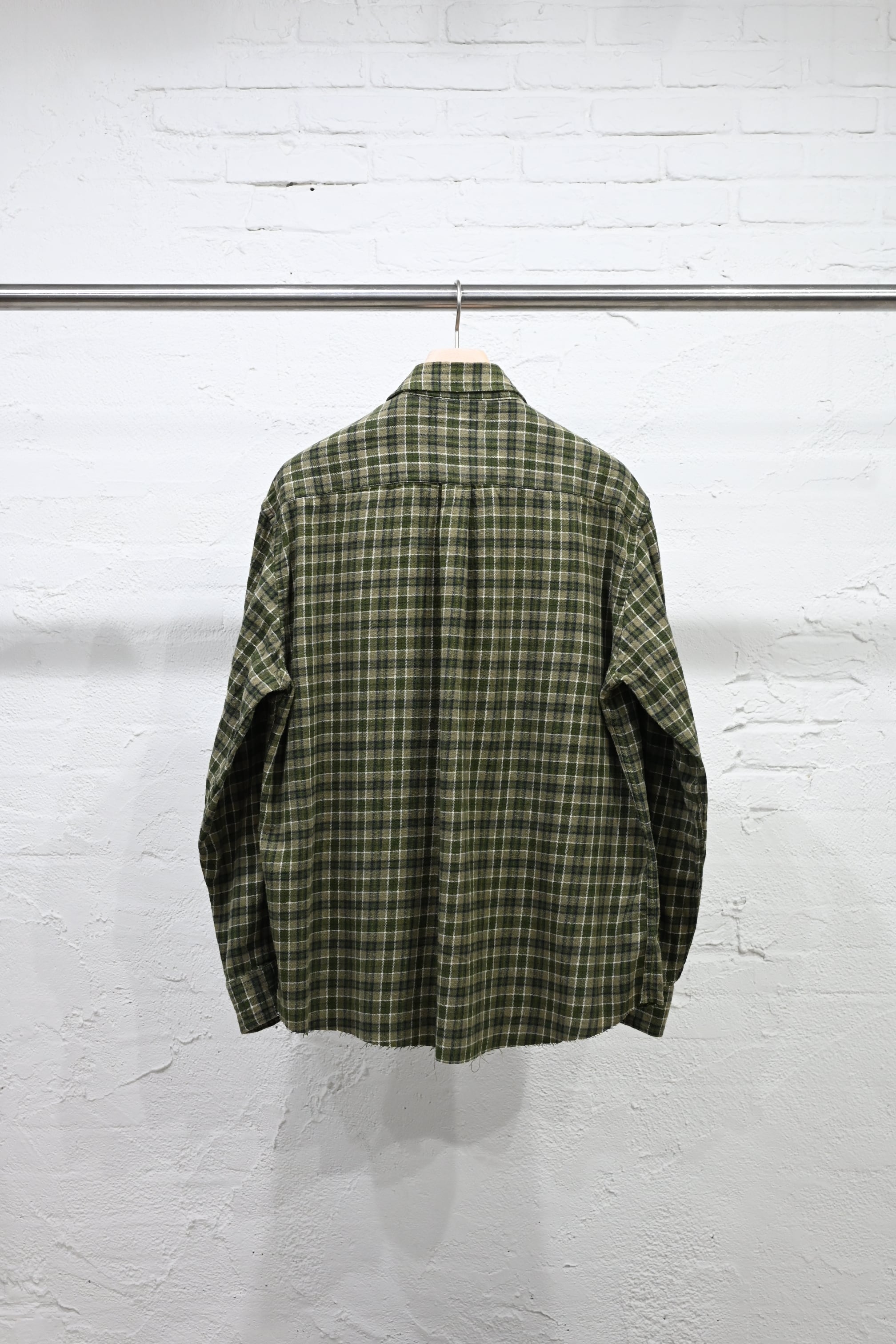 16種類のネル柄を組み合わせたパネルパッチワークの一着は、すべてが一点もの。ギザステッチ