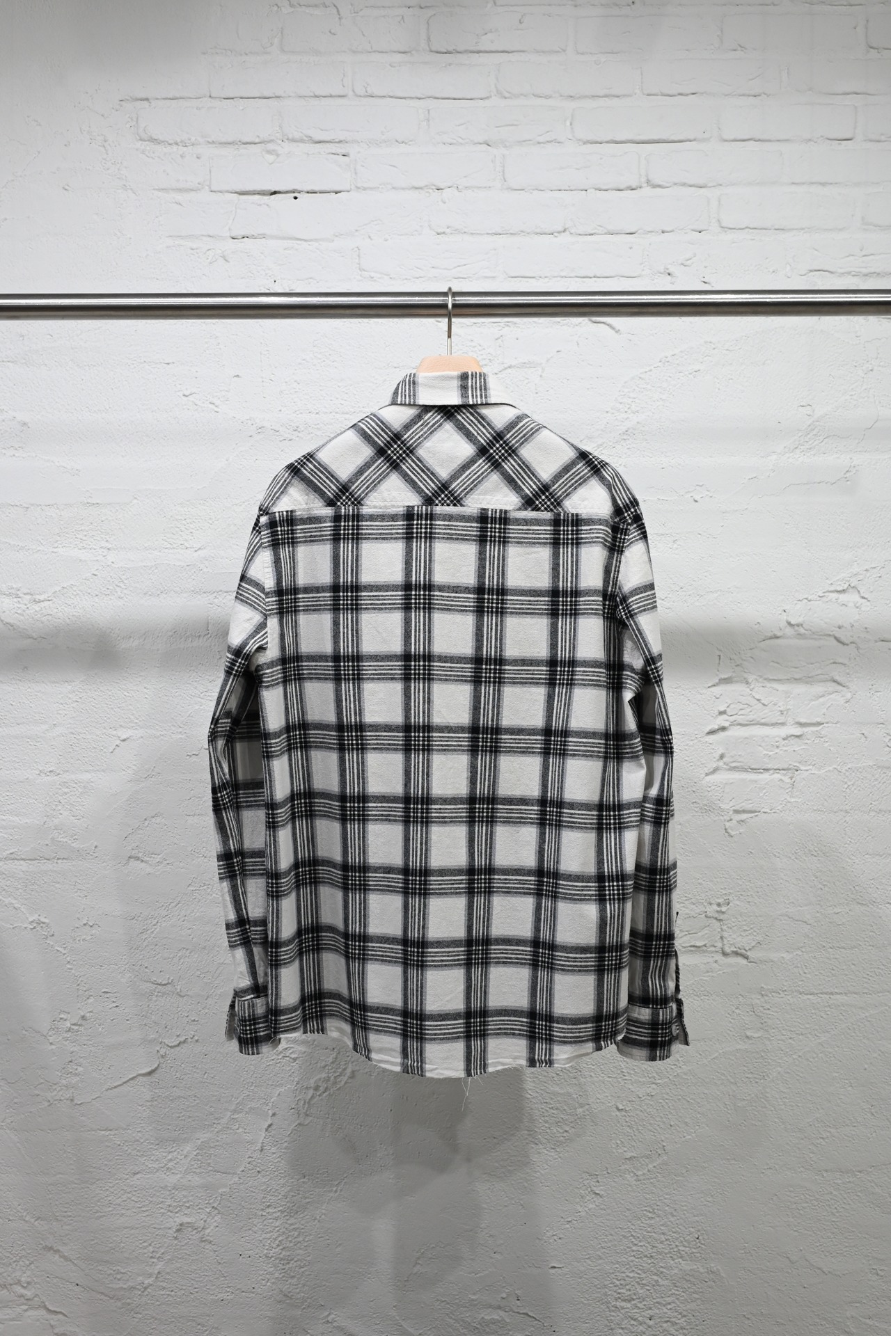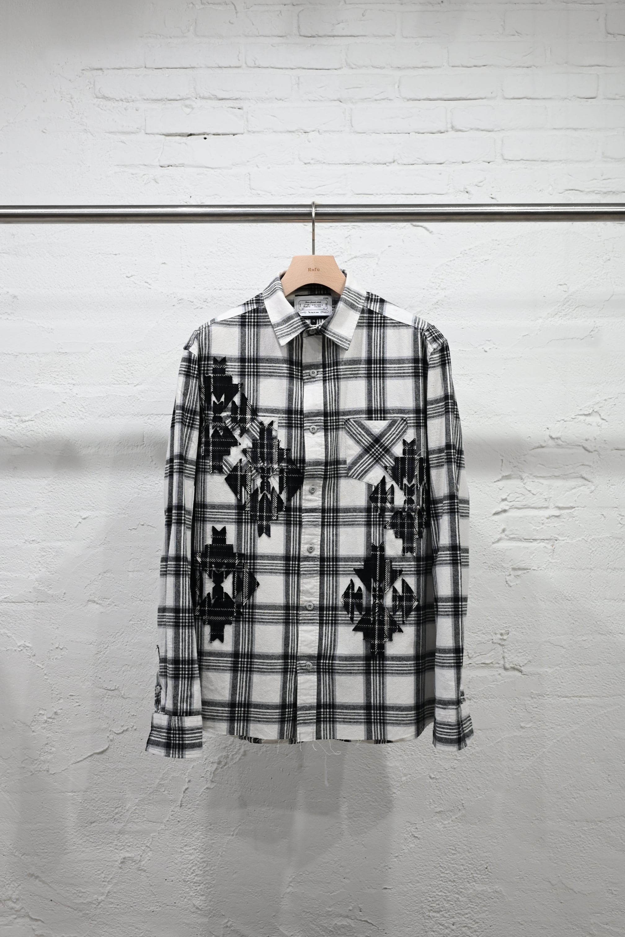 16種類のネル柄を組み合わせたパネルパッチワークの一着は、すべてが一点もの。ギザステッチ