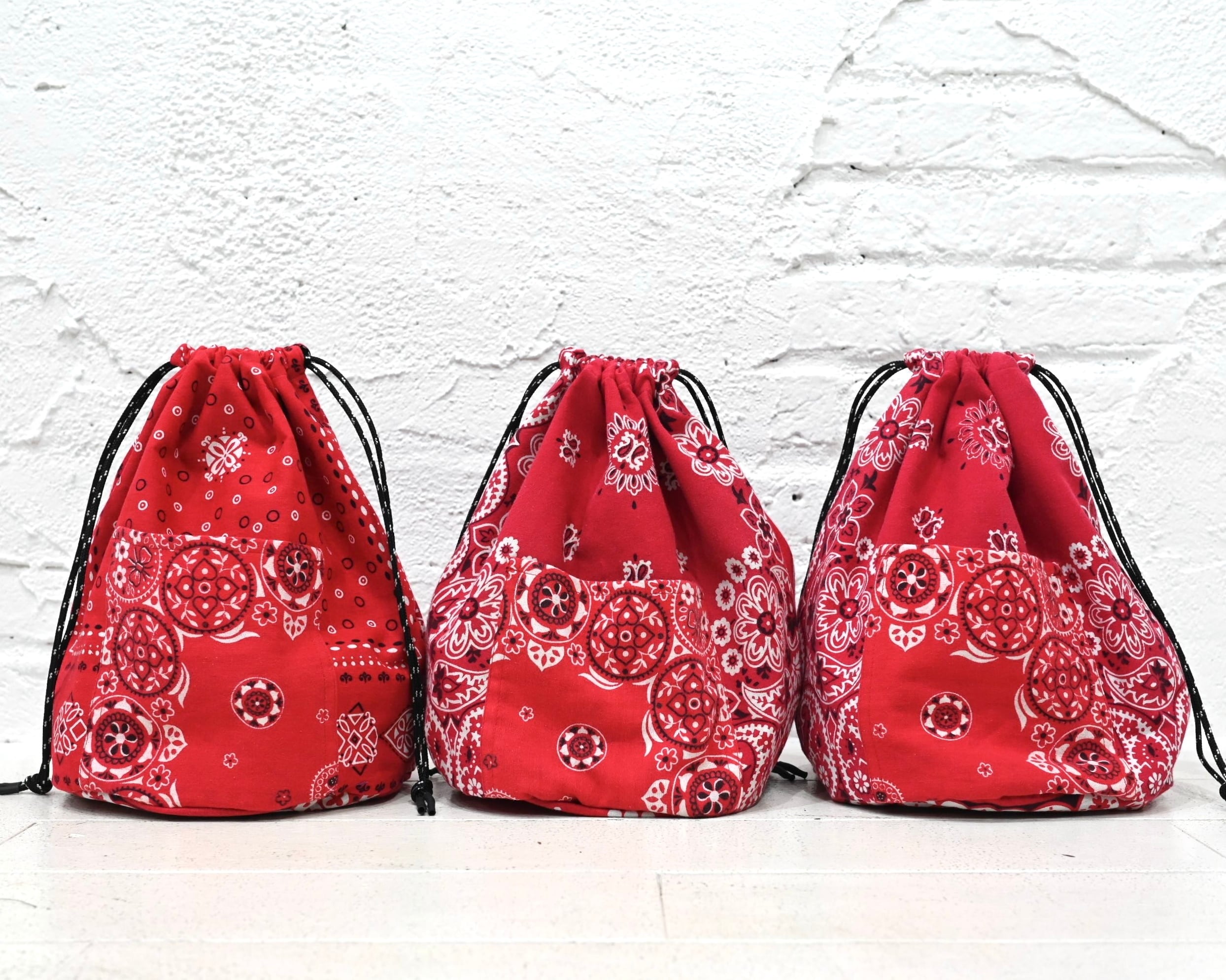 Patchwork Drawstring Bag C/# Bandana RED