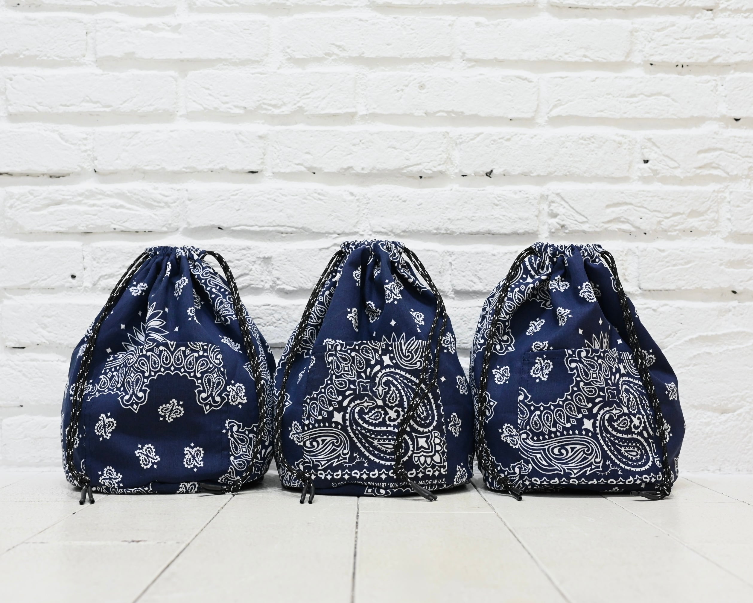 Patchwork Drawstring Bag C/# Bandana NAVY