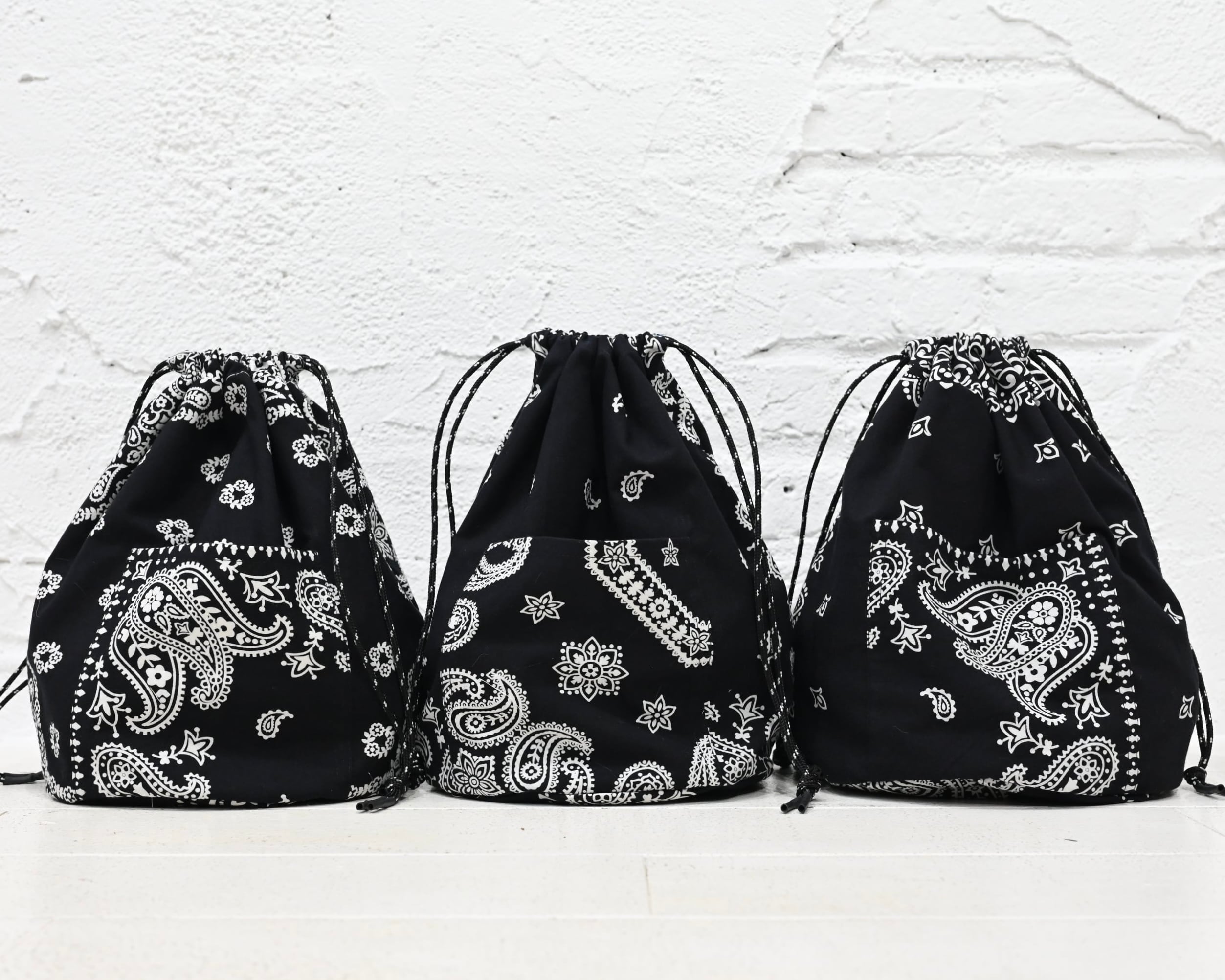 Patchwork Drawstring Bag C/# Bandana BLACK