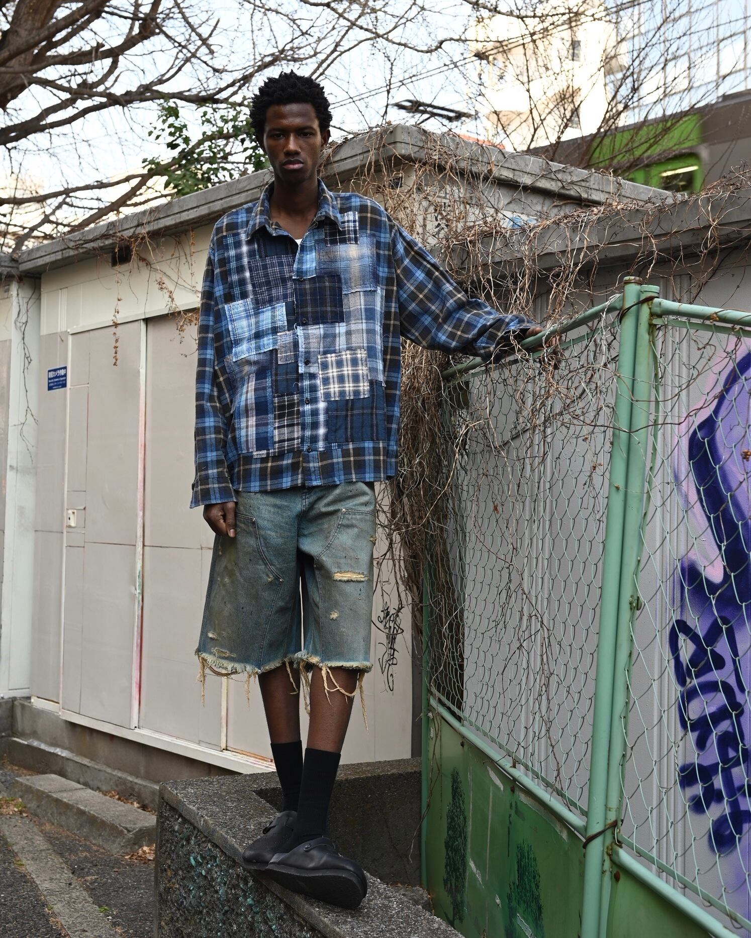 MH051 Damaged work shorts / DENIM