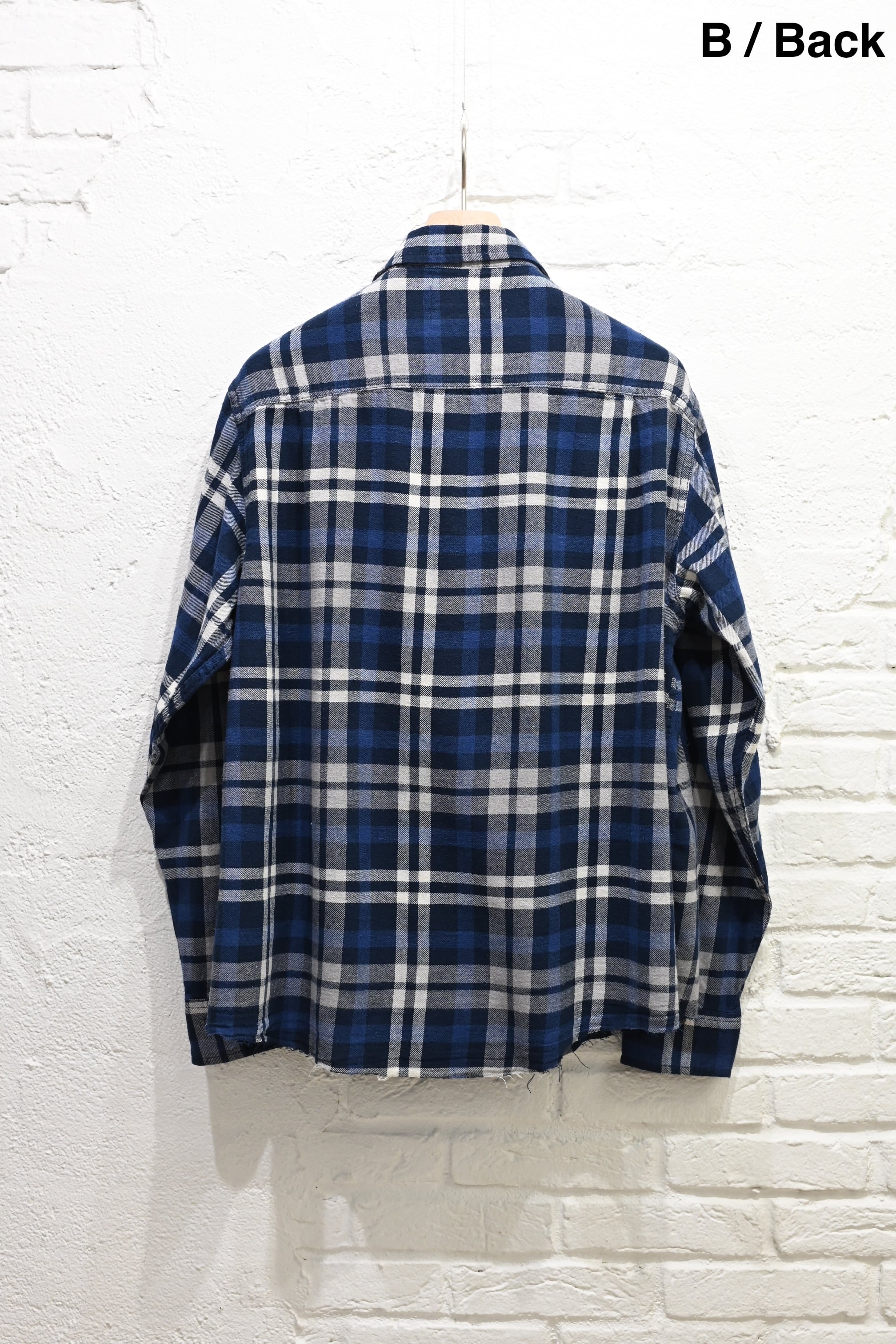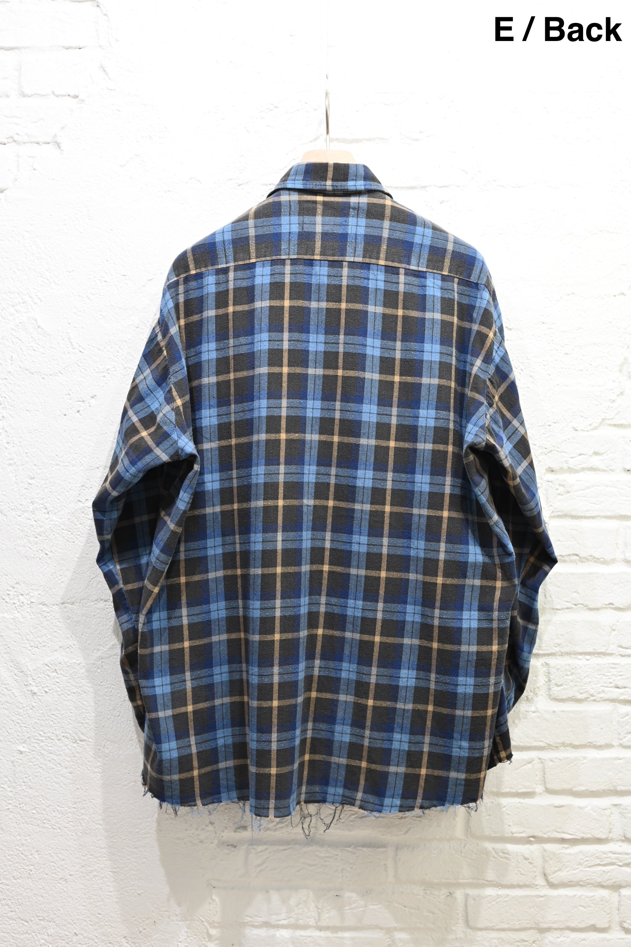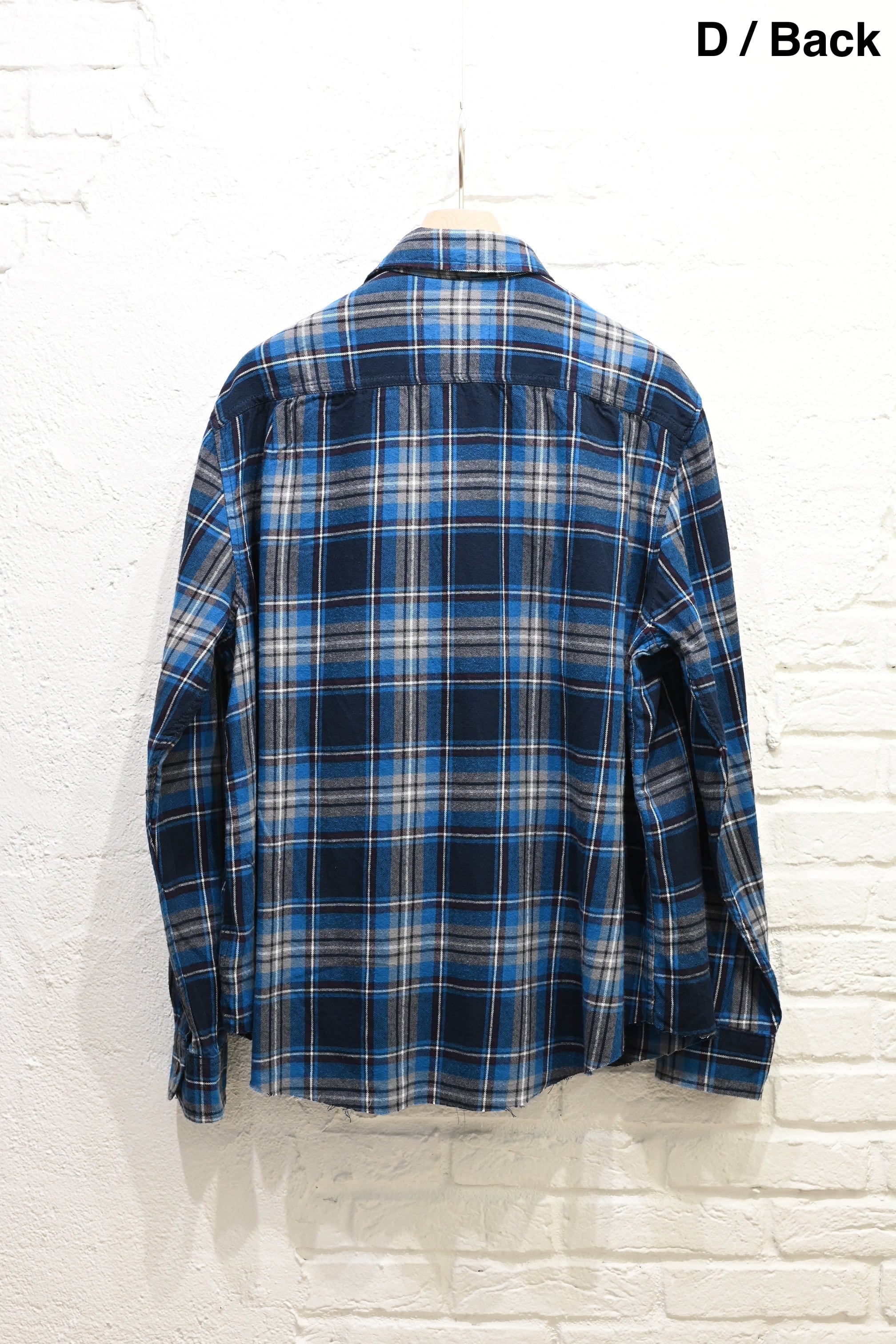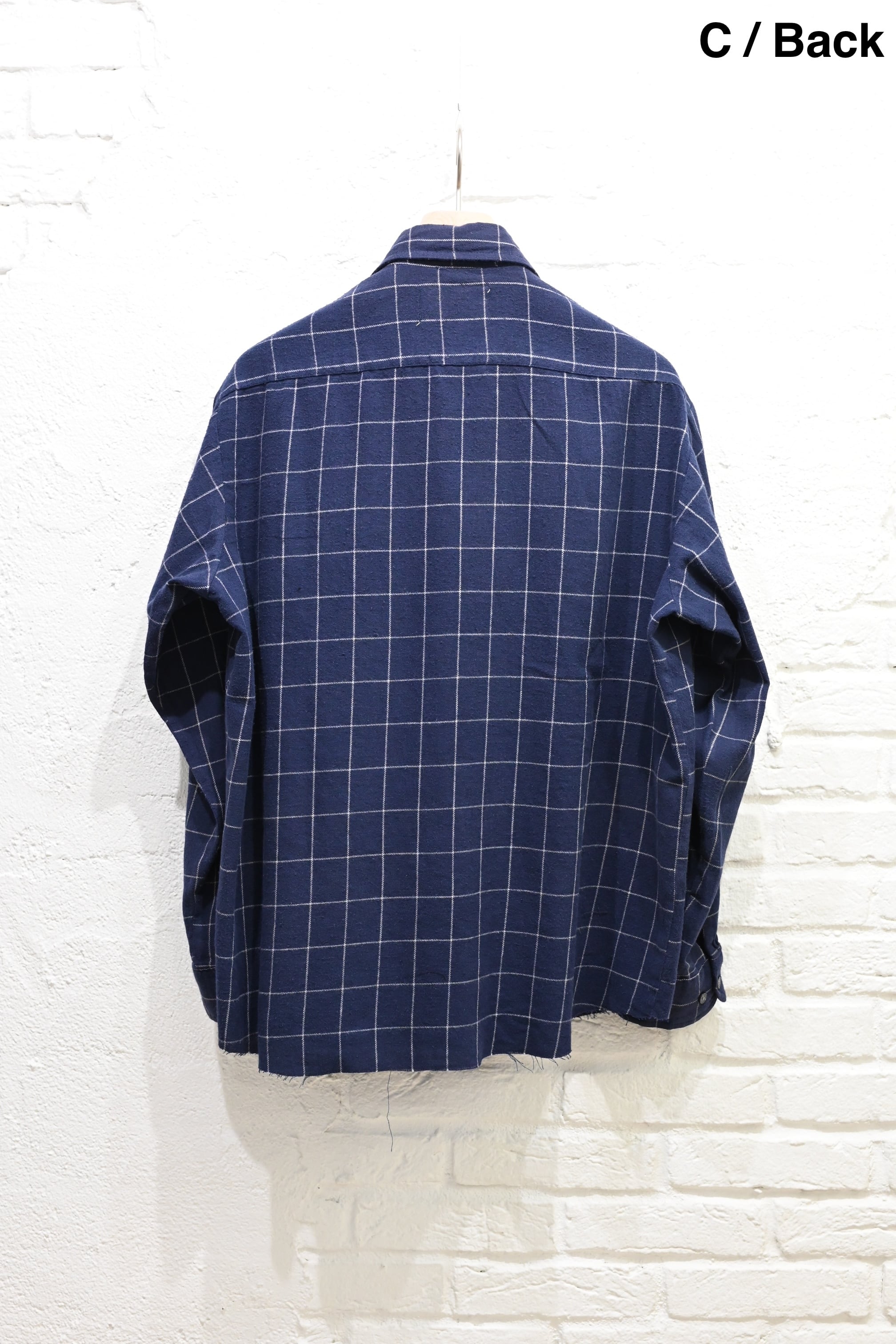 16種類のネル柄を組み合わせたパネルパッチワークの一着は、すべてが一点もの。ギザステッチ