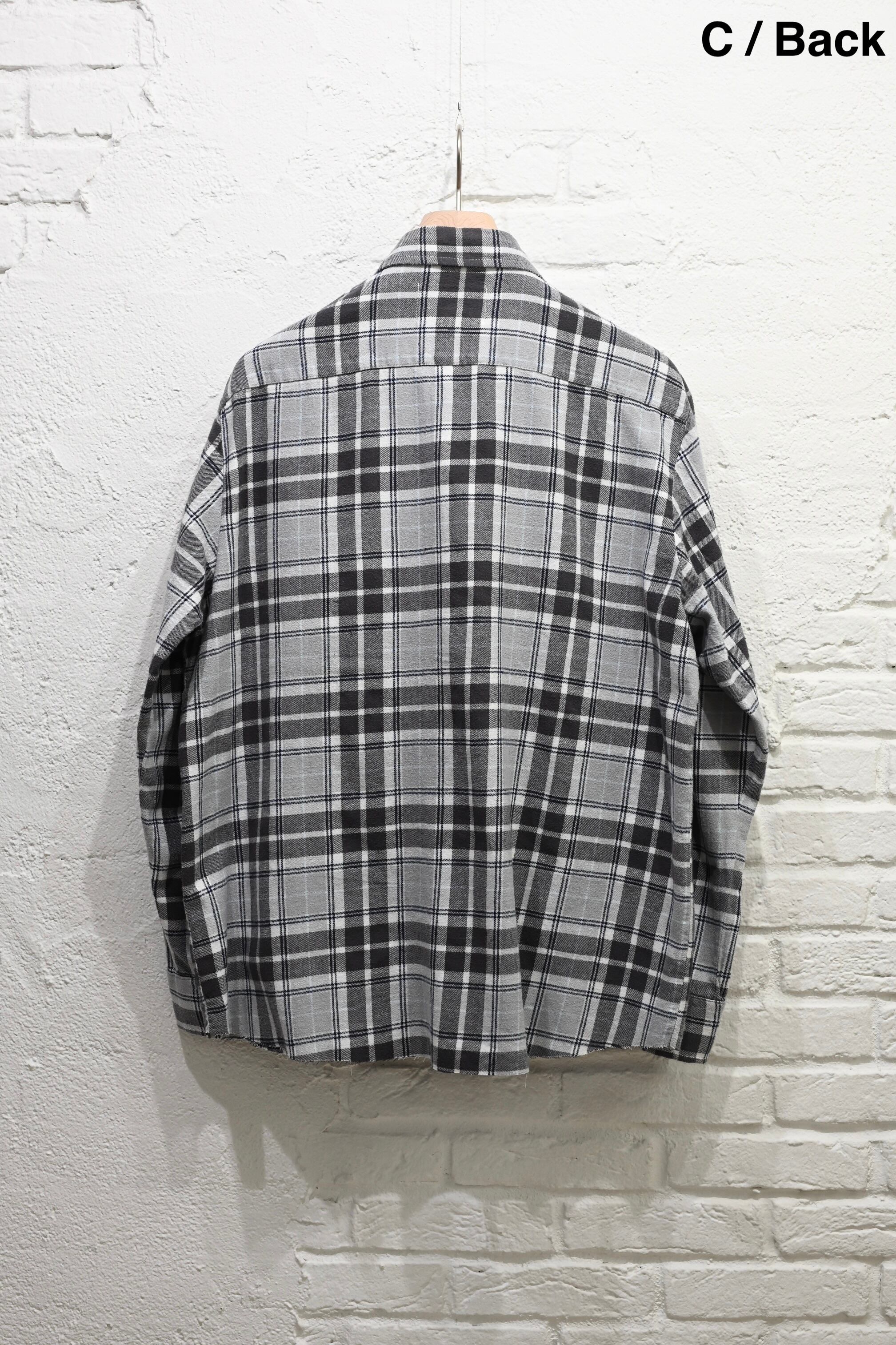 16種類のネル柄を組み合わせたパネルパッチワークの一着は、すべてが一点もの。ギザステッチ