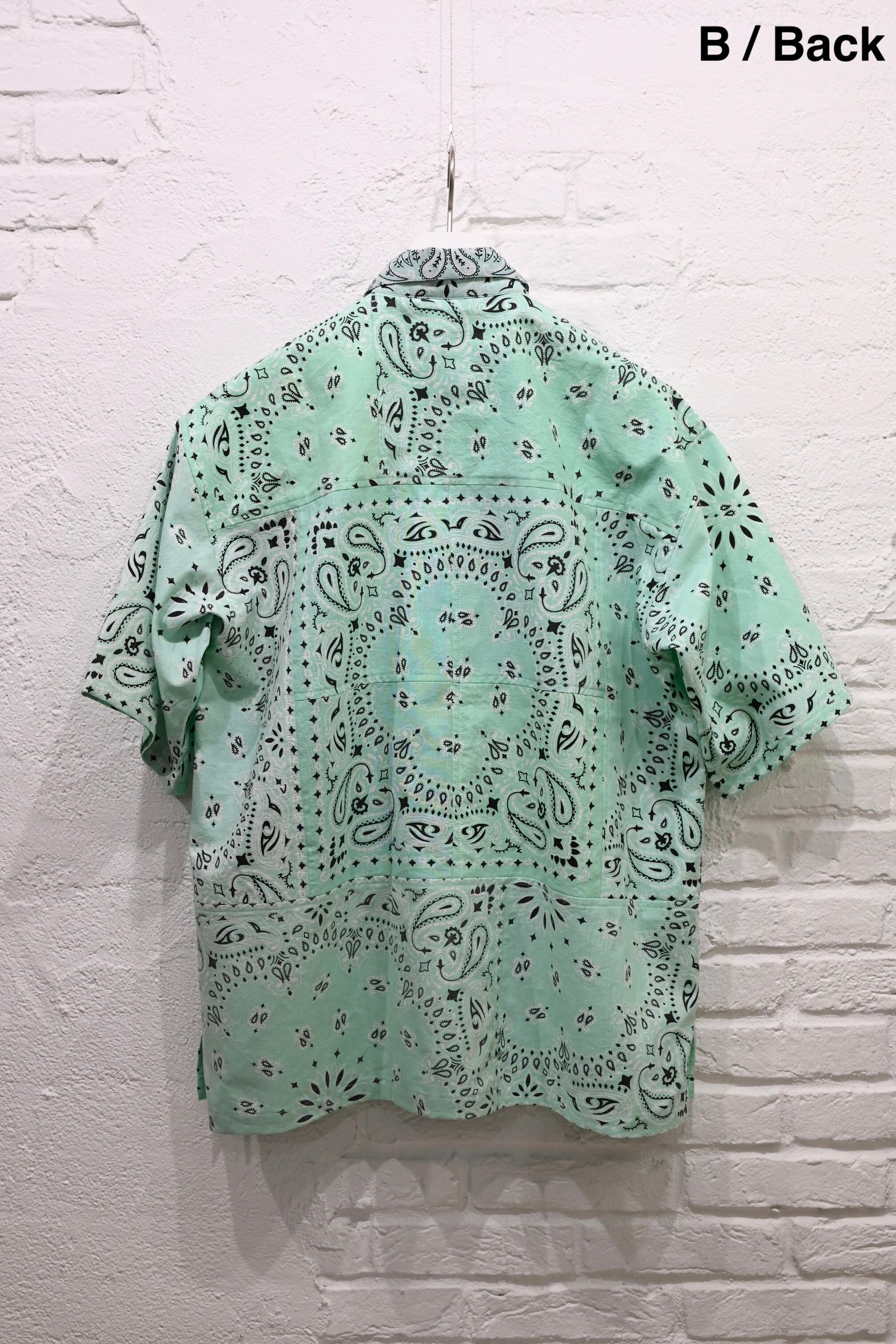 半袖シャツは11枚のバンダナを使用し、パッチワークで構成。配置や柄の向きに至るまで細かく設計されています。